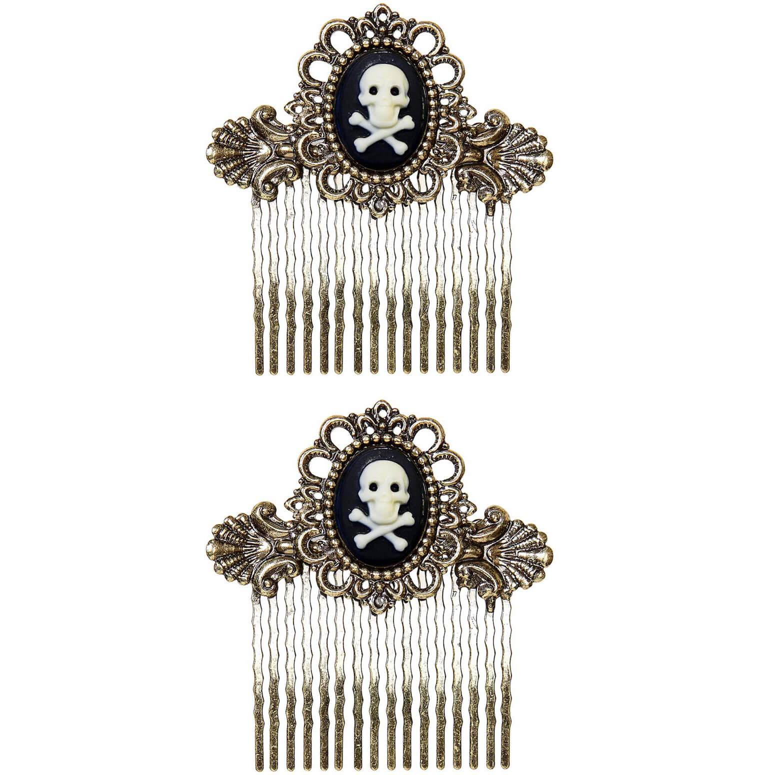 Piraten Haarkamm Kämme Set Schädel mit gekreuzten Knochen wie Cameedame elegant altgold gold-weiß