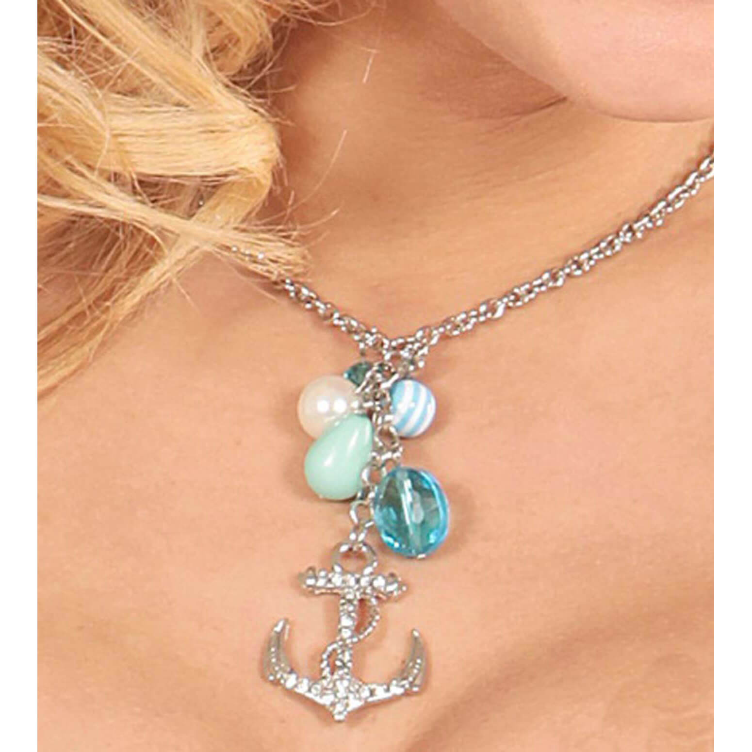 Anker Halskette mit Anhänger Strassoptik mit Perlen silber-blau – (ARTIKEL/REFERNZ: 8003558467686/WI46768 – Kategorie/Suche: – Hersteller: Widmann S.r.l.)