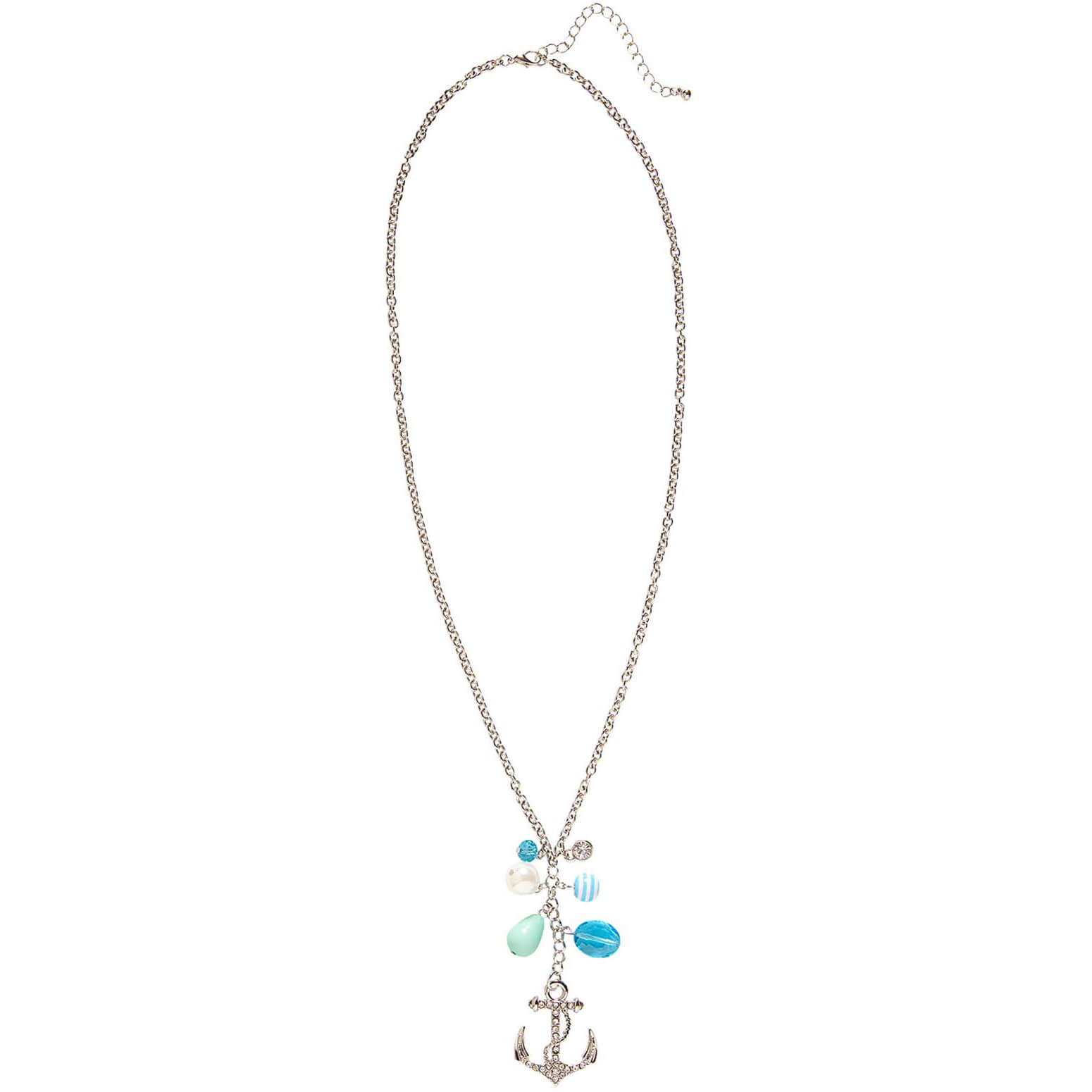 Anker Halskette mit Anhänger Strassoptik mit Perlen silber-blau