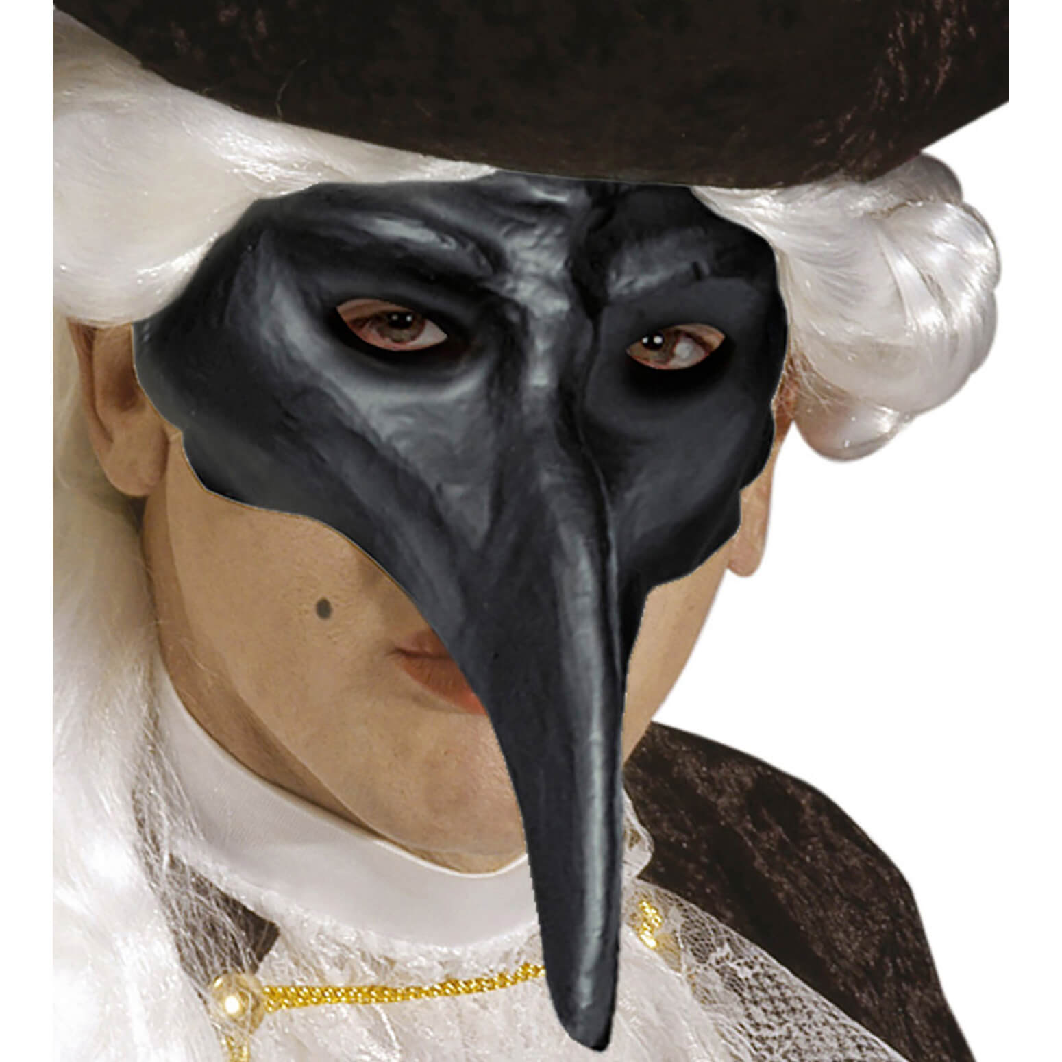 Edle venezianische Pantalone Schnabelmaske aus Kunststoff schwarz