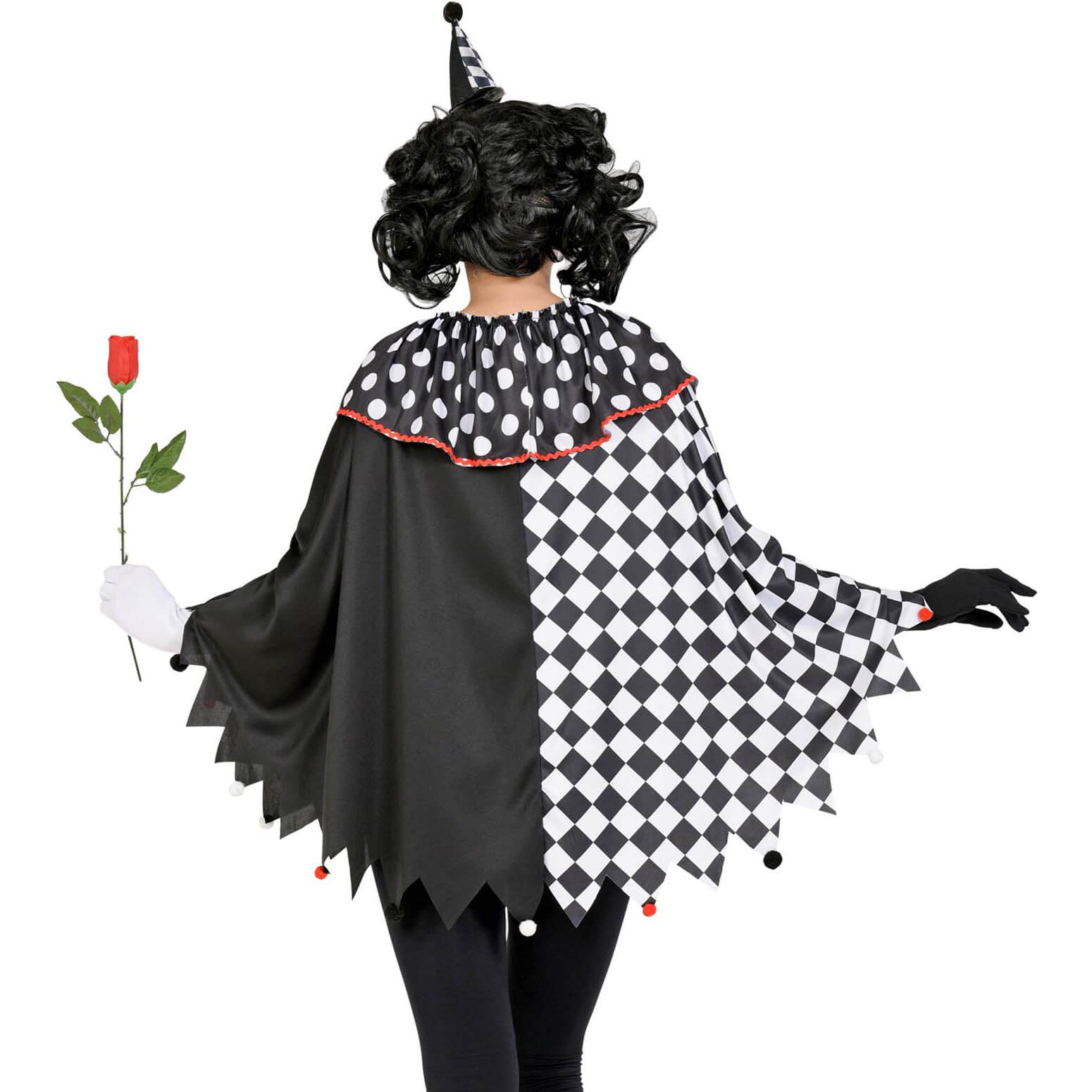 Clown Harlekin Kostüm Poncho Überwurf mit Kragen und Bommeln schwarz-weiß