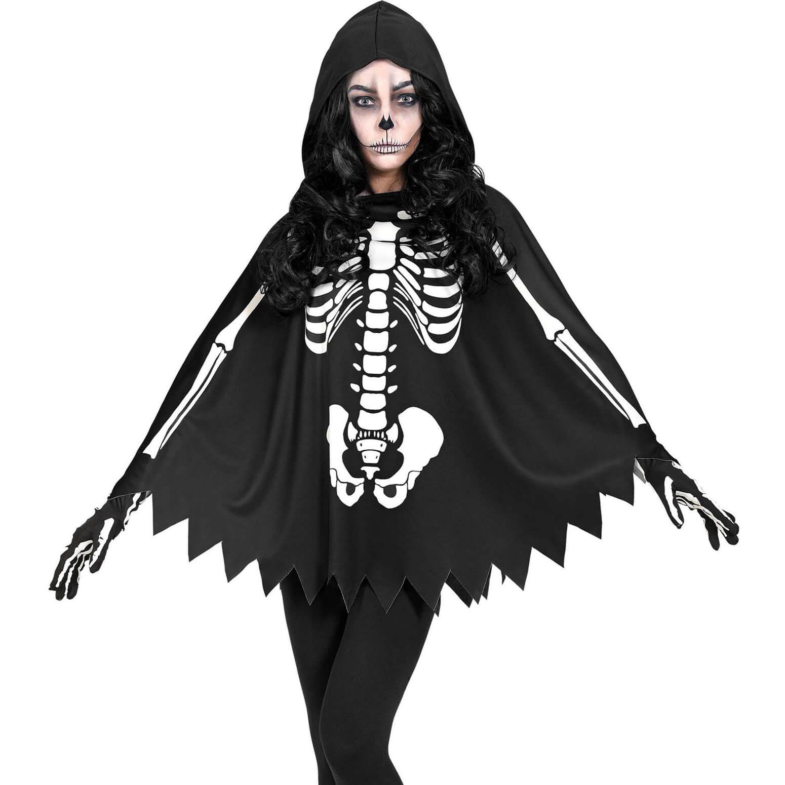 Skelett bleich Kostüm Poncho Überwurf mit Kapuze schwarz-weiß