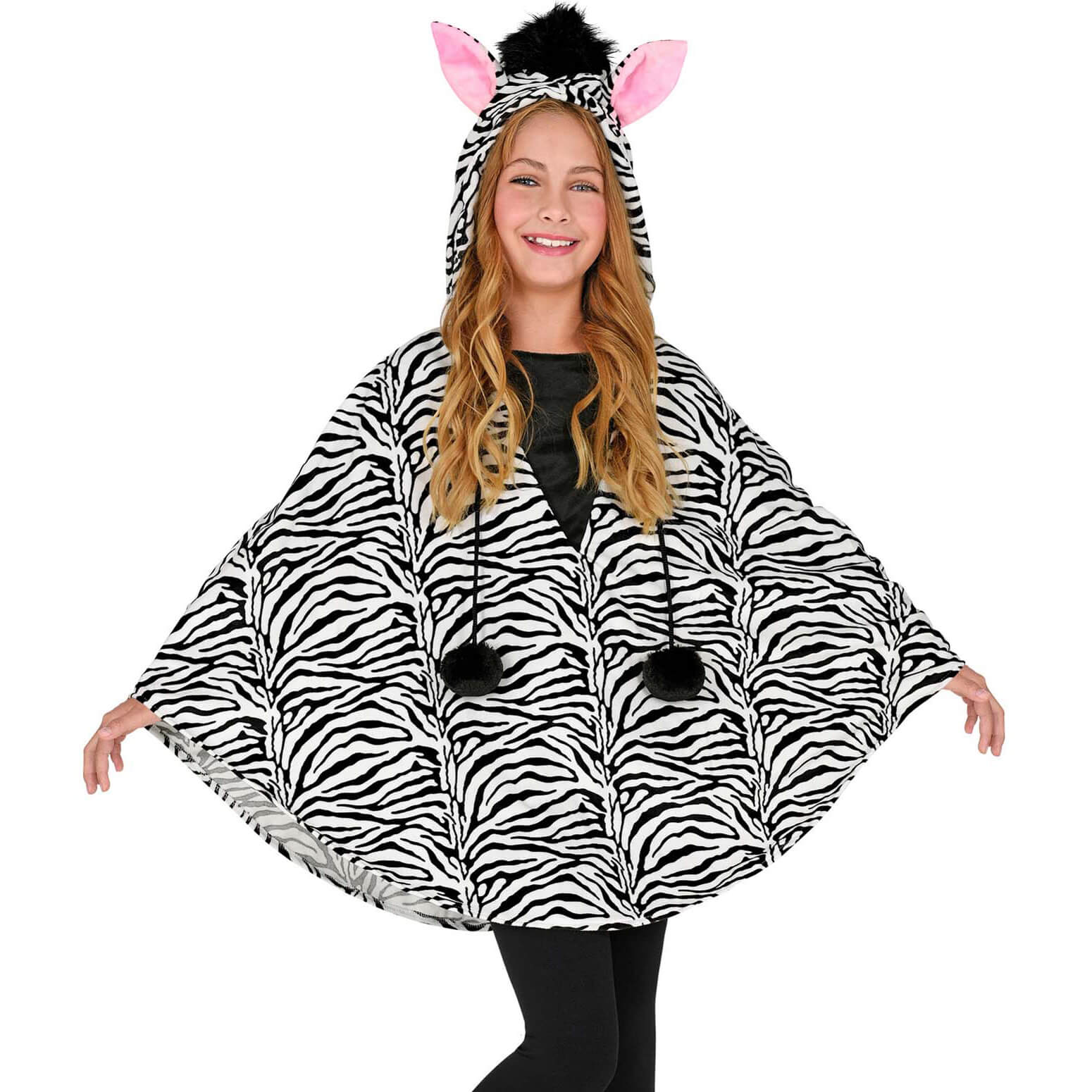 Pferd Zebra Kinderkostüm Poncho Überwurf Velours mit Kapuze schwarz-weiß