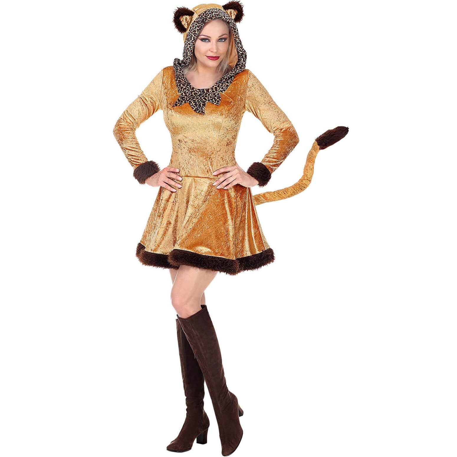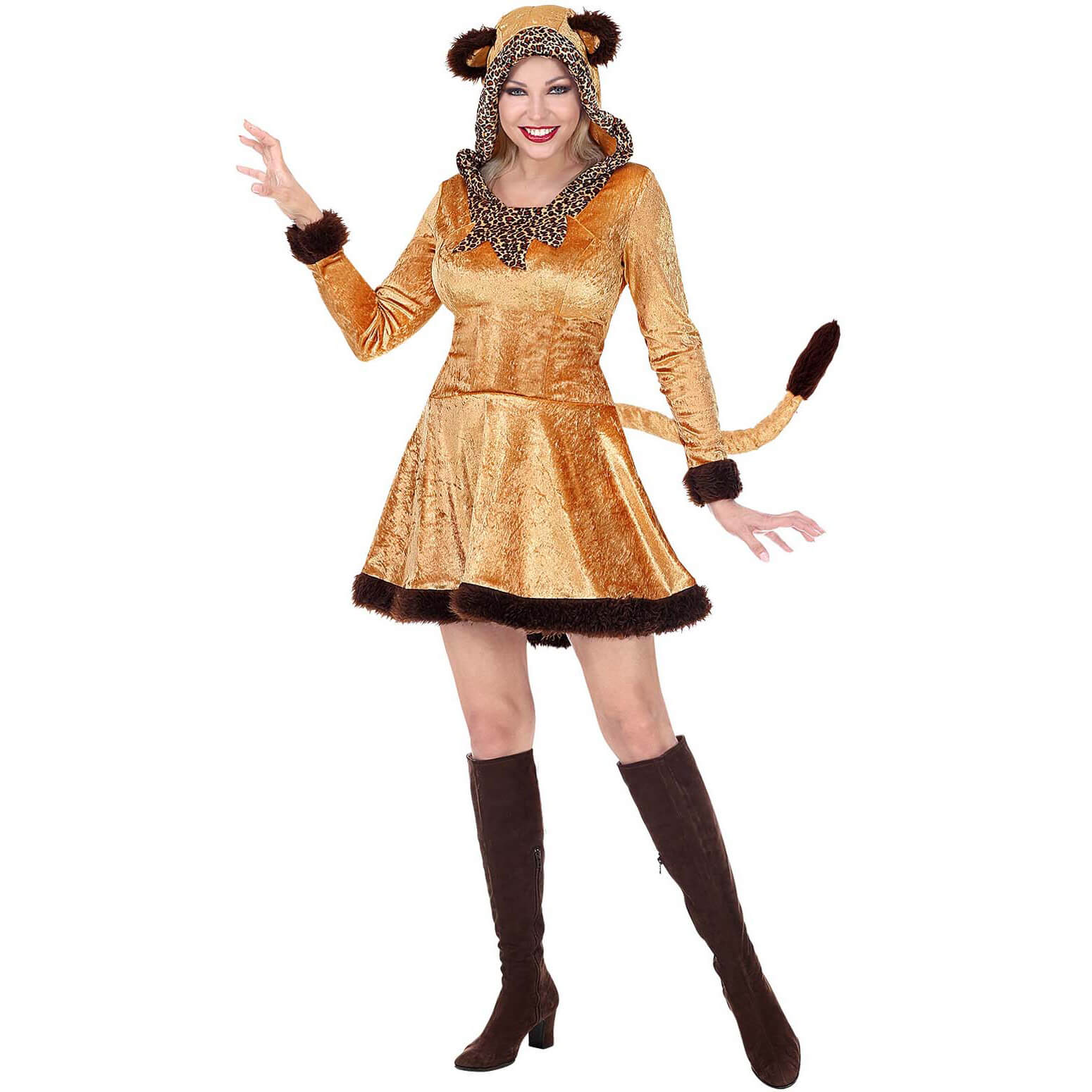 Leopardin Kostüm Kleid kurz aus Samt mit Plüsch und Kapuze hellbraun – (ARTIKEL/REFERNZ: 8003558484317/WI48431 – Kategorie/Suche: – Hersteller: Widmann S.r.l.)