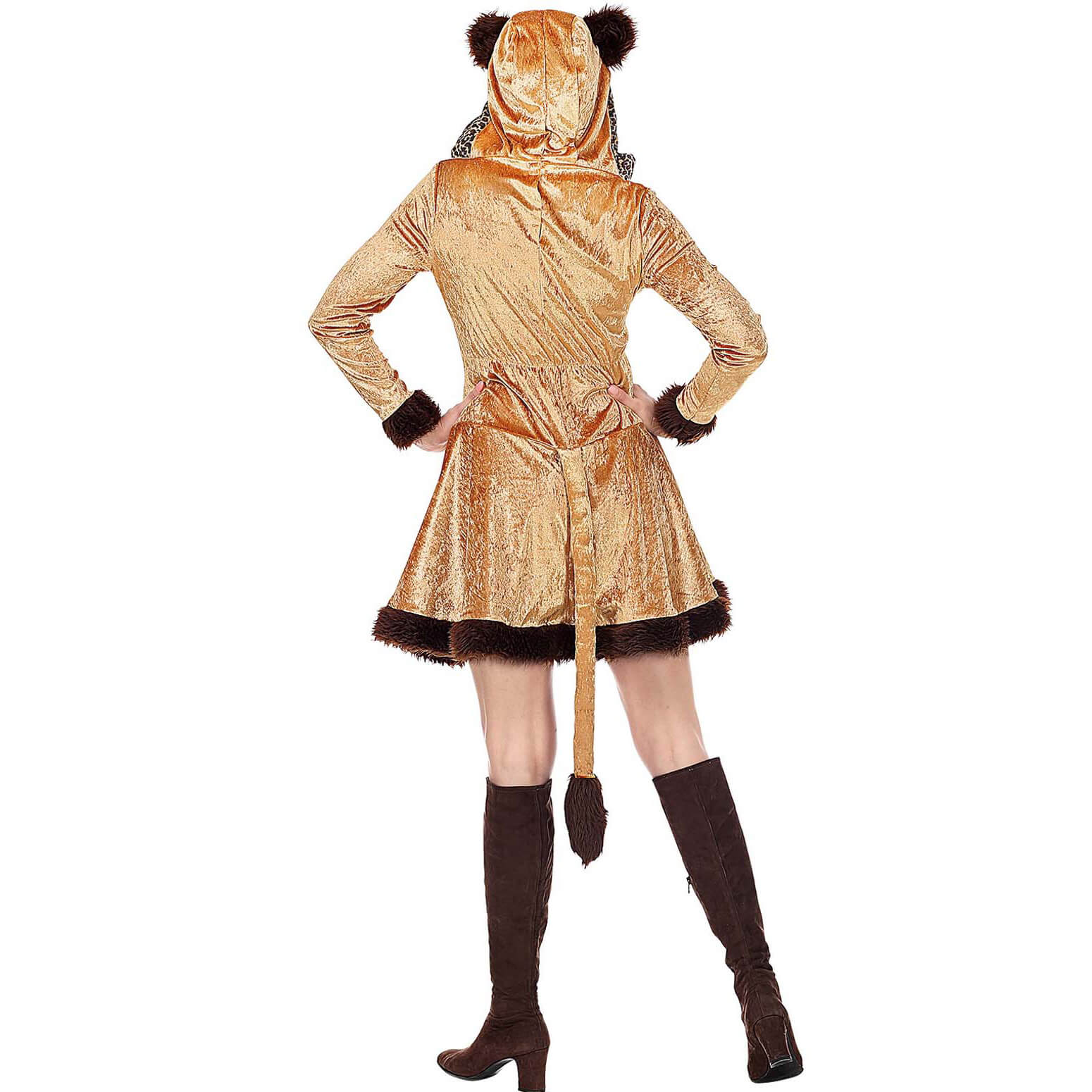 Leopardin Kostüm Kleid kurz aus Samt mit Plüsch und Kapuze hellbraun