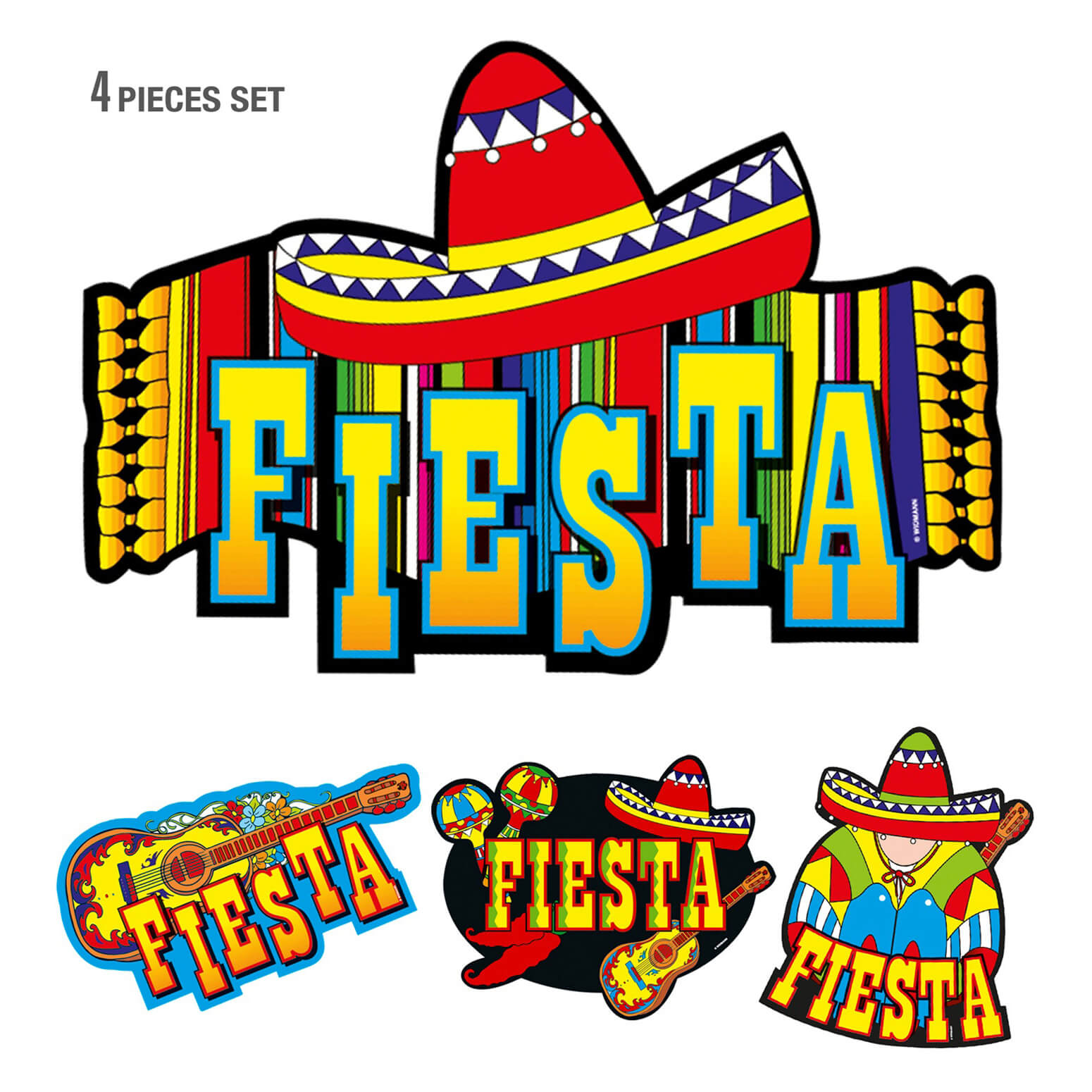 Mexiko Deko Wandbilder Set mit Sombreros 4-teilig aus Papier 55cm FIESTA bunt – (ARTIKEL/REFERNZ: 8003558507009/WI5070D – Kategorie/Suche: – Hersteller: Widmann S.r.l.)