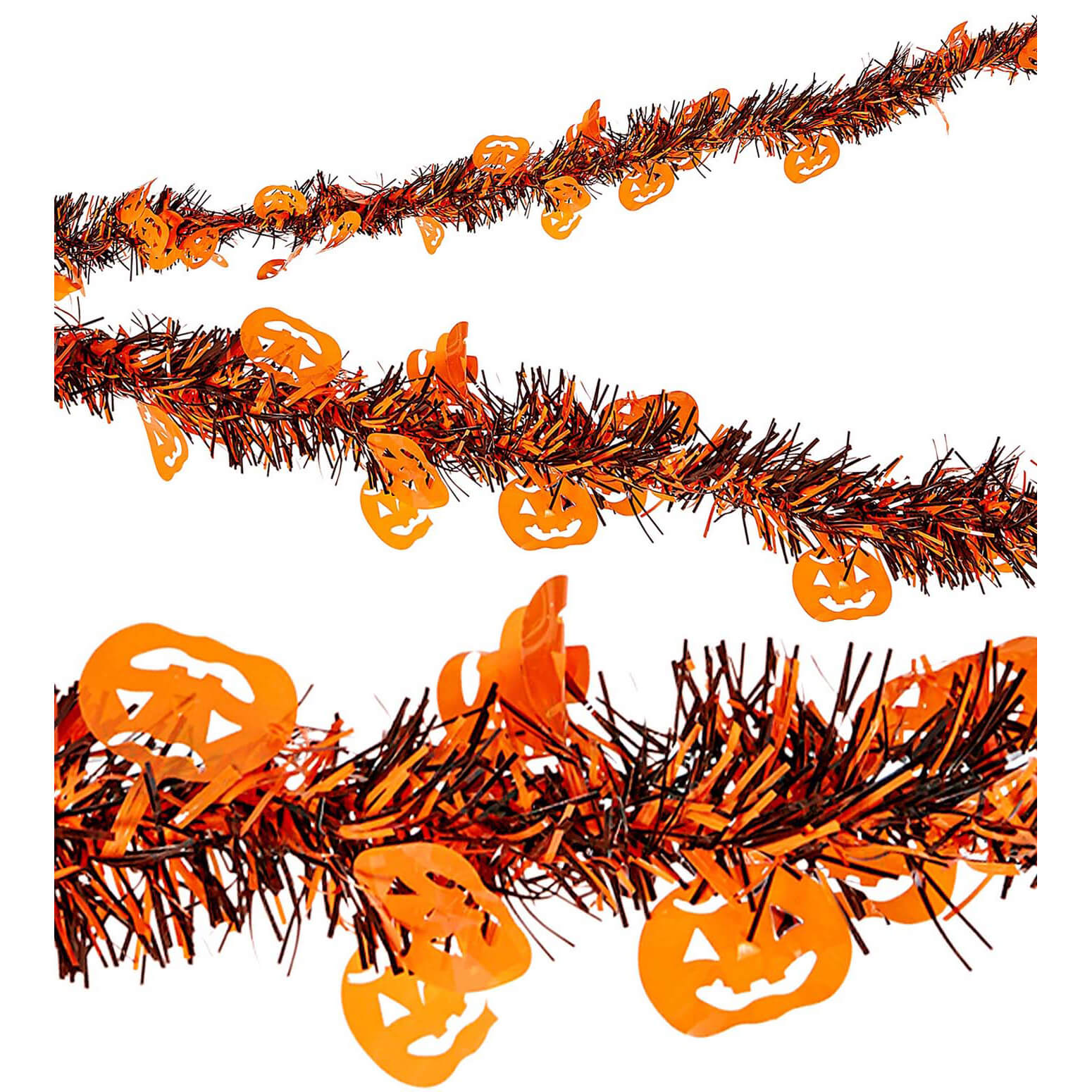 Kürbisse Dekofoliengirlande Lametta Drahtgirlande mit Kunststofffäden 427cm orange-schwarz