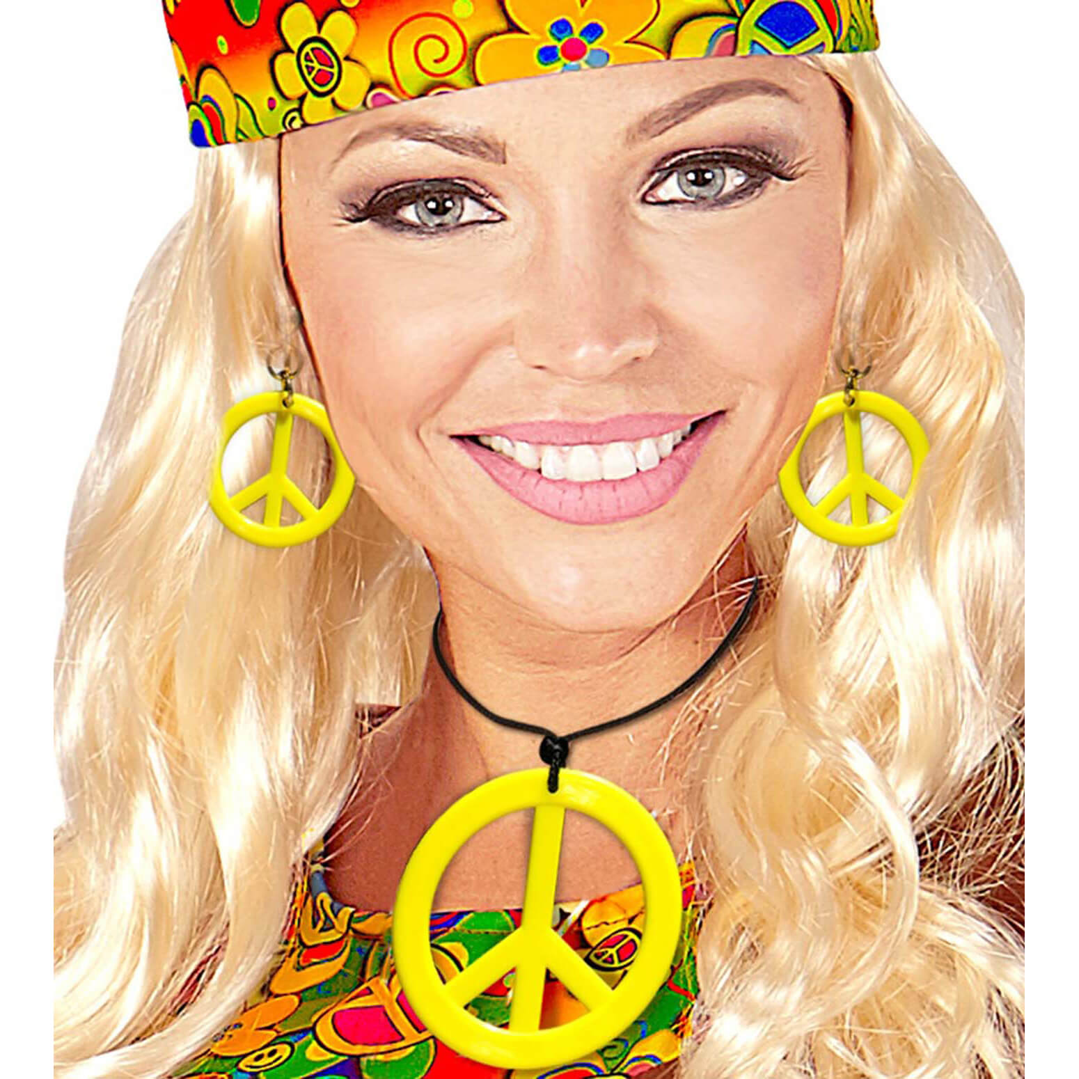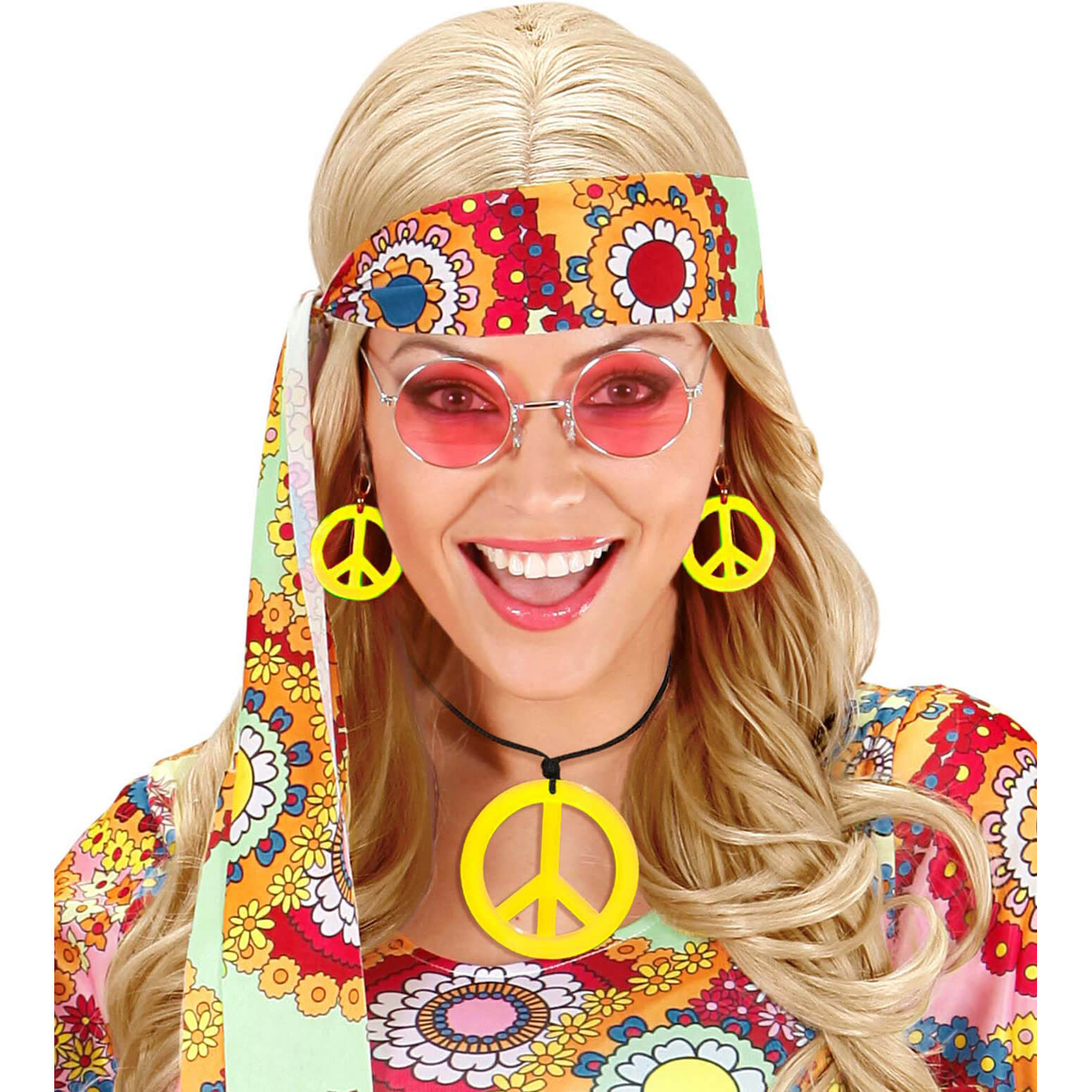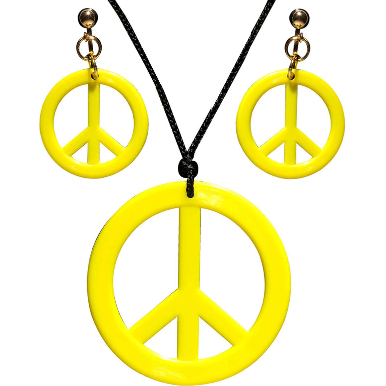 70er Jahre Hippie Peacezeichen Halskette+Ohrring Set aus neongrünem Kunststoff mit Textilhalsband grün – (ARTIKEL/REFERNZ: 8003558532834/WI53283 – Kategorie/Suche: – Hersteller: Widmann S.r.l.)