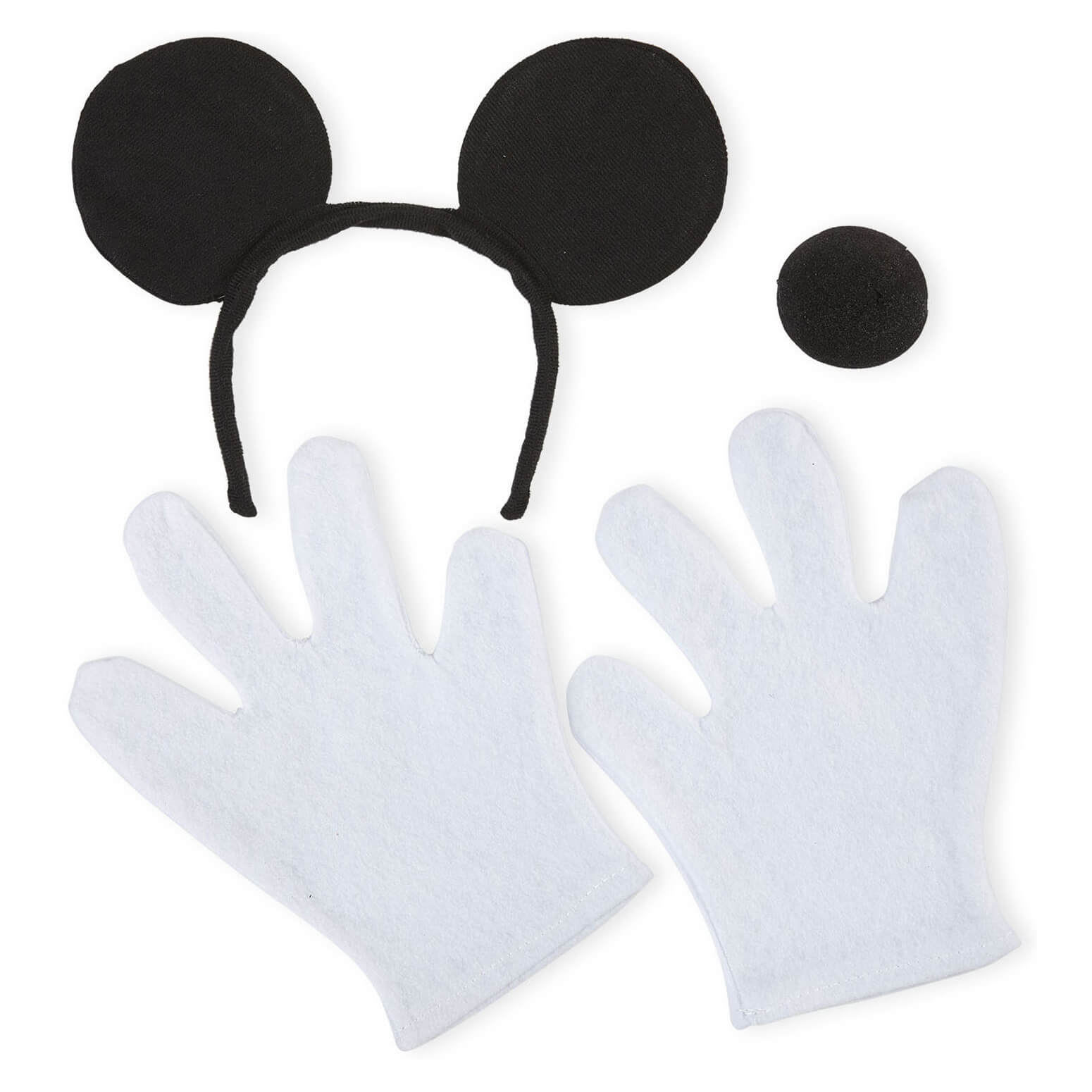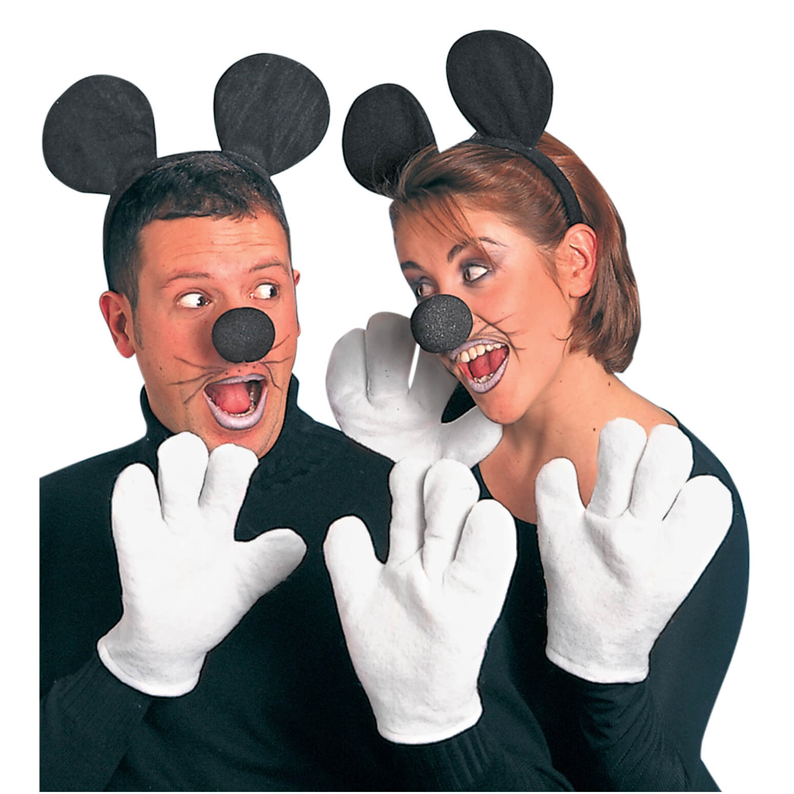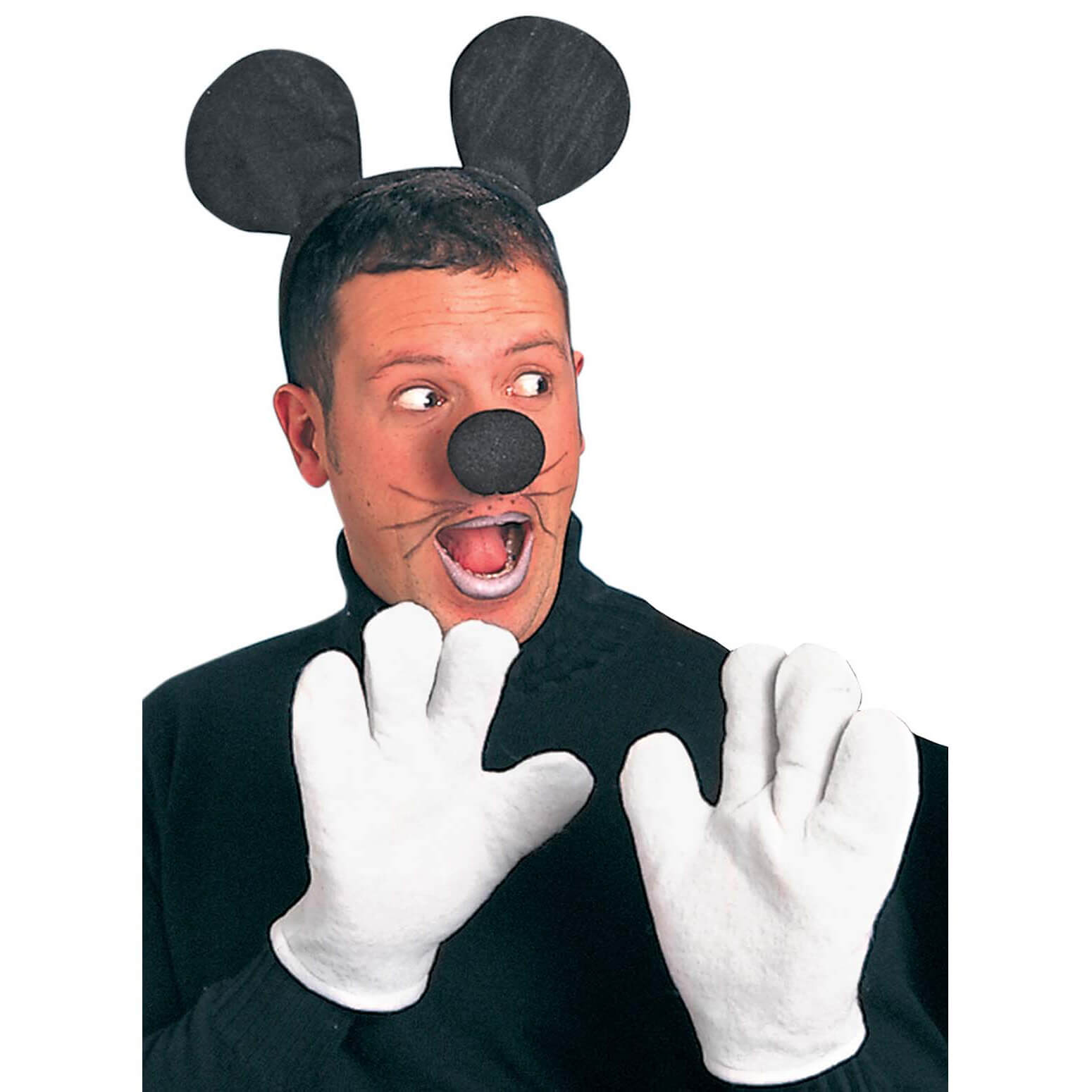 Mister Maus Haarreif mit Ohren+Nase+Handschuhe Set schwarz