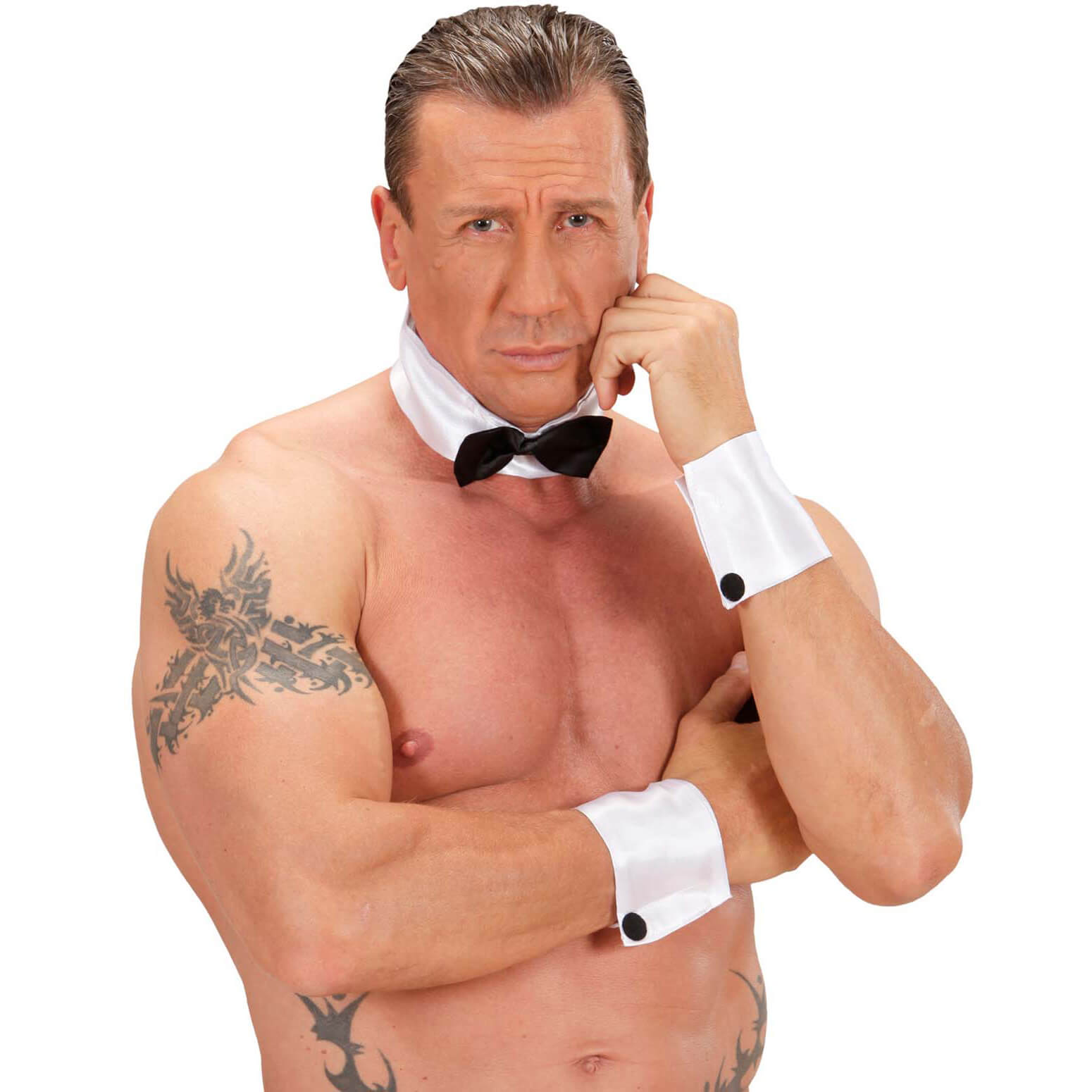 Sexy Stripper Kragen+Manschetten Set mit Fliege weiß-schwarz – (ARTIKEL/REFERNZ: 8003558547203/WI5472S – Kategorie/Suche: – Hersteller: Widmann S.r.l.)