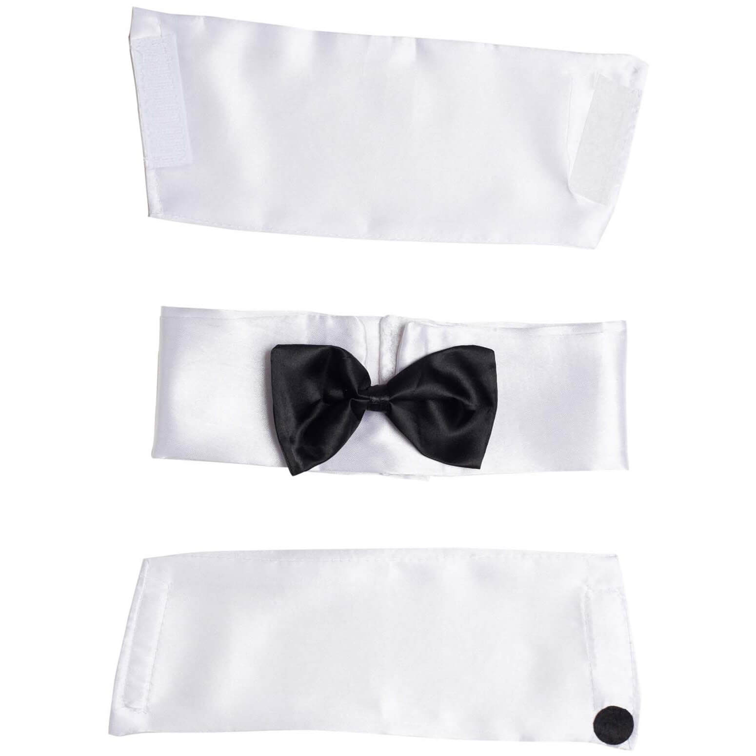 Sexy Stripper Kragen+Manschetten Set mit Fliege weiß-schwarz