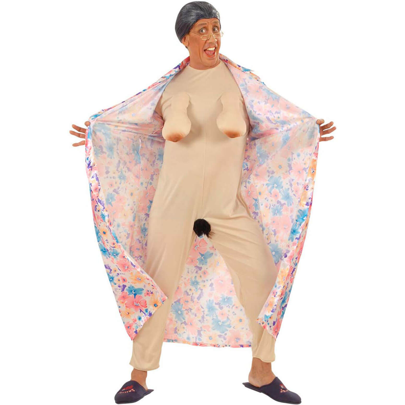 Exibitionisten Oma Kostüm Overall mit Morgenmantel haut-bunt