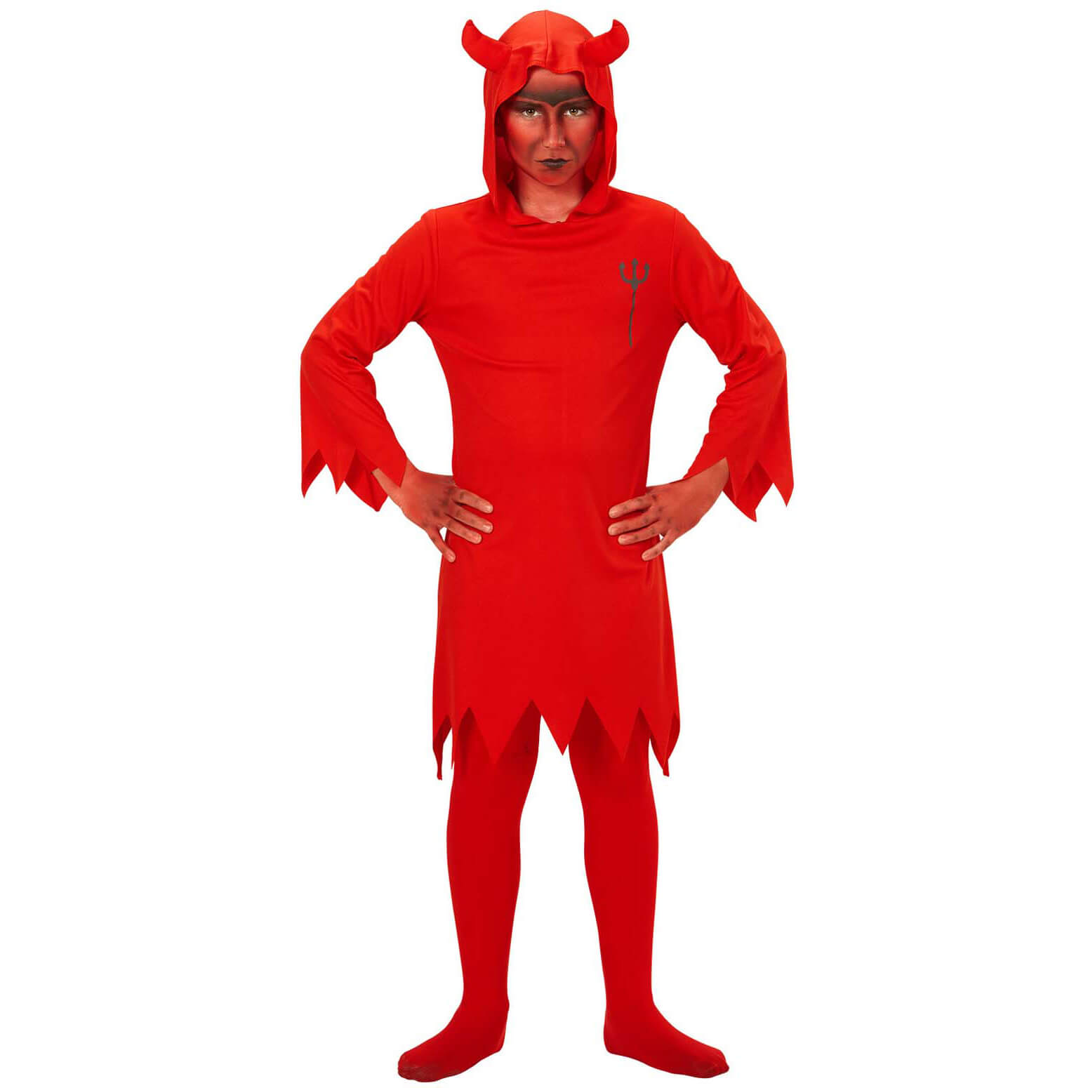 Teufel Kinderkostüm Tunika kurz langes Oberteil mit Kapuze rot – (ARTIKEL/REFERNZ: 8003558589807/WI58980-8003558589852/WI58985-8003558589869/WI58986-8003558589876/WI58987-8003558589883/WI58988 – Kategorie/Suche: – Hersteller: Widmann S.r.l.)