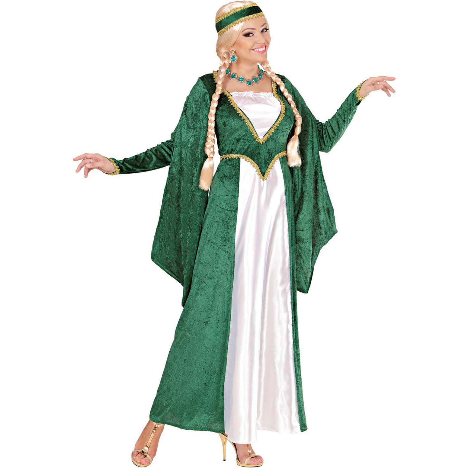 Mittelalterliche Dame Kostüm Kleid lang aus Samt grün-creme – (ARTIKEL/REFERNZ: 8003558596614/WI59661-8003558596621/WI59662-8003558596638/WI59663-8003558596645/WI59664-8003558596607/WI59660 – Kategorie/Suche: – Hersteller: Widmann S.r.l.)
