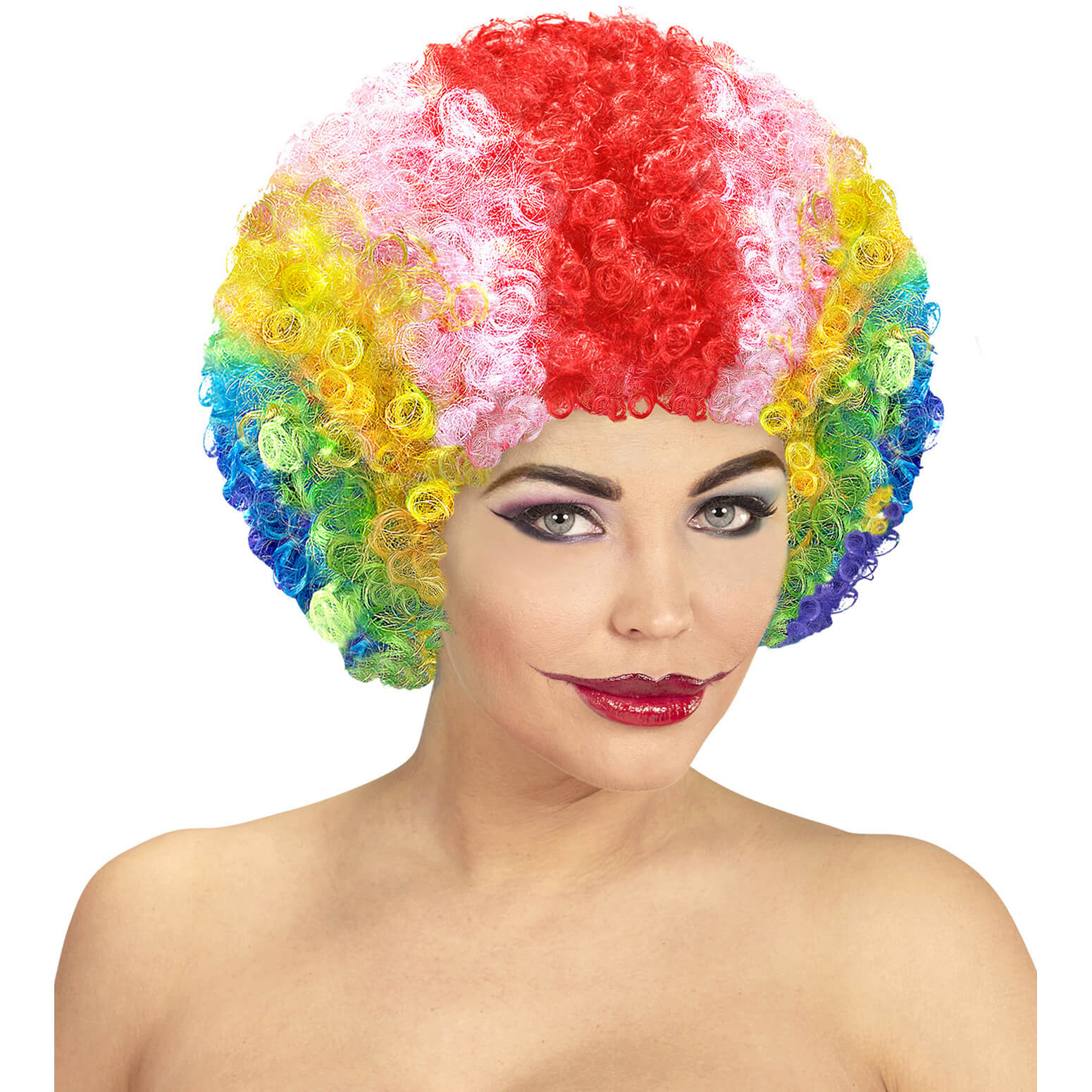 Regenbogen Afroperücke kurz lockig Clown Kurzhaarfrisur mit Locken bunt