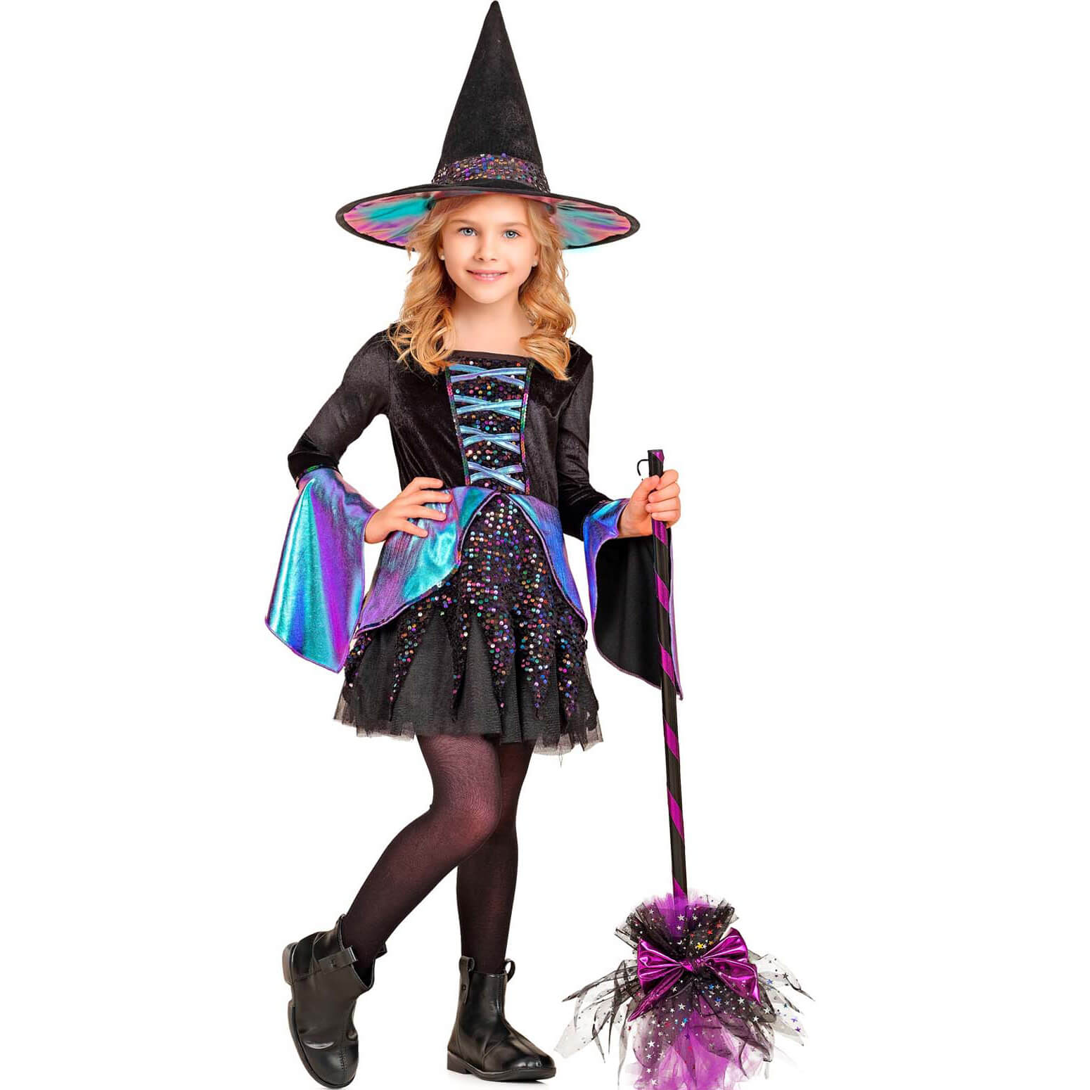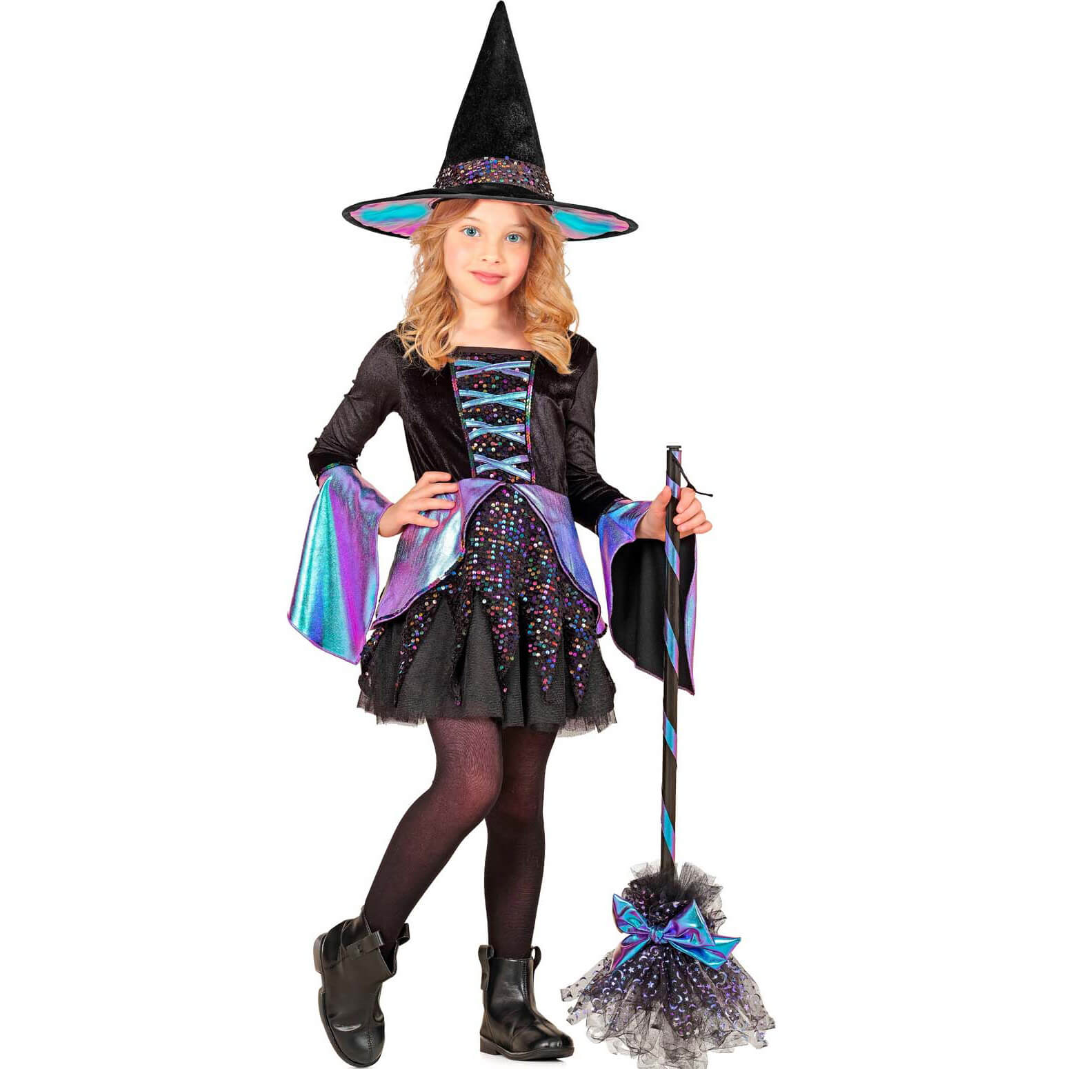 Hexe Kinderkostüm Kleid kurz Metallic Hexe mit Pailletten schwarz mit türkis-lila – (ARTIKEL/REFERNZ: 8003558609253/WI60925-8003558609260/WI60926-8003558609277/WI60927-8003558609284/WI60928 – Kategorie/Suche: – Hersteller: Widmann S.r.l.)