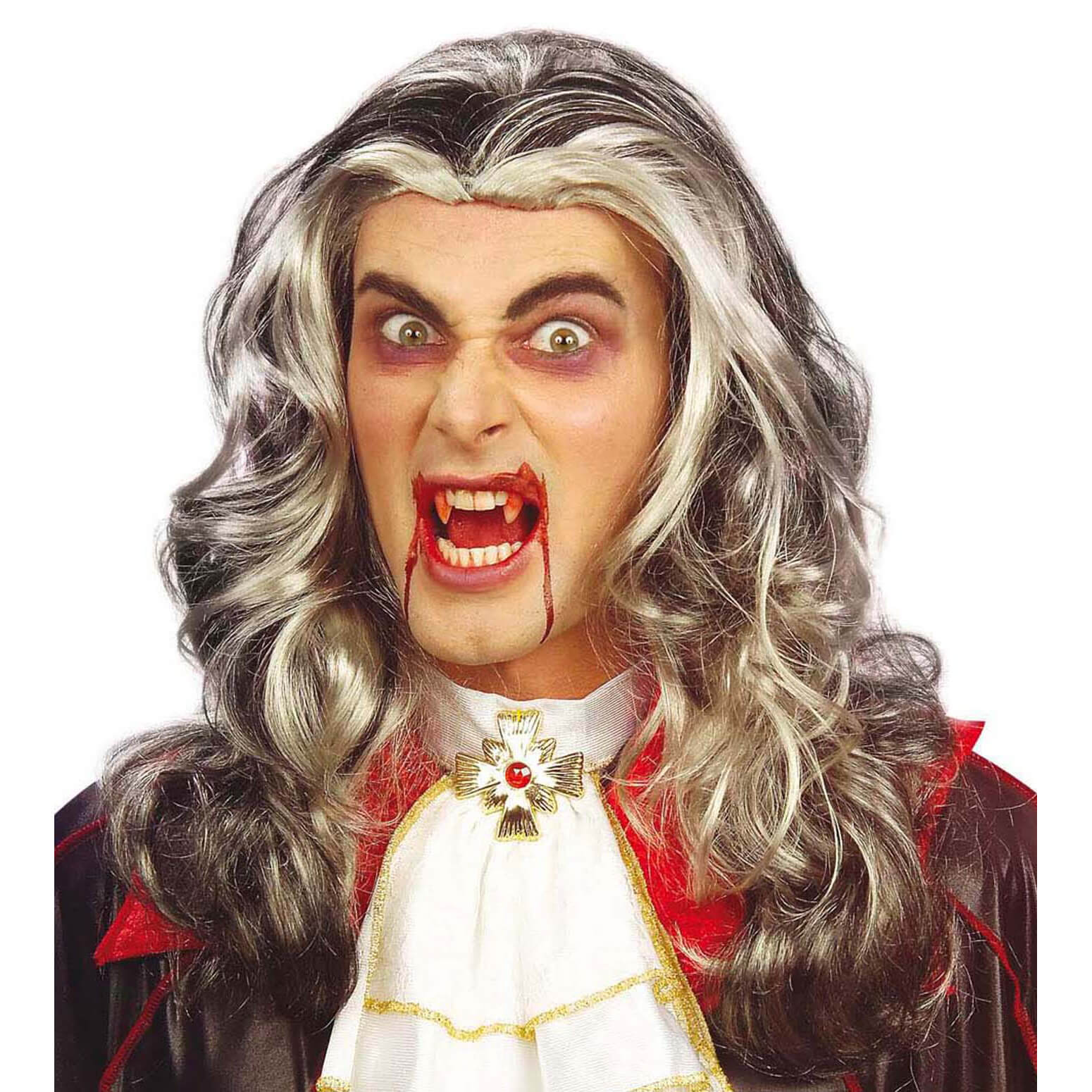 Vampir/Zauberer Perücke lang lockig Vampir Langhaarfrisur mit Locken Mittelscheitel Herrenperücke schwarz-grau – (ARTIKEL/REFERNZ: 8003558614608/WI6146T – Kategorie/Suche: – Hersteller: Widmann S.r.l.)