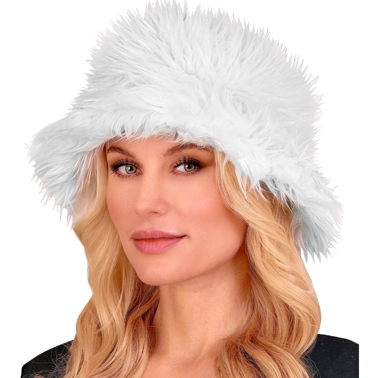 70er / 90er / Festival Eimerhut Fischerhut aus Plüsch Deluxe weiß