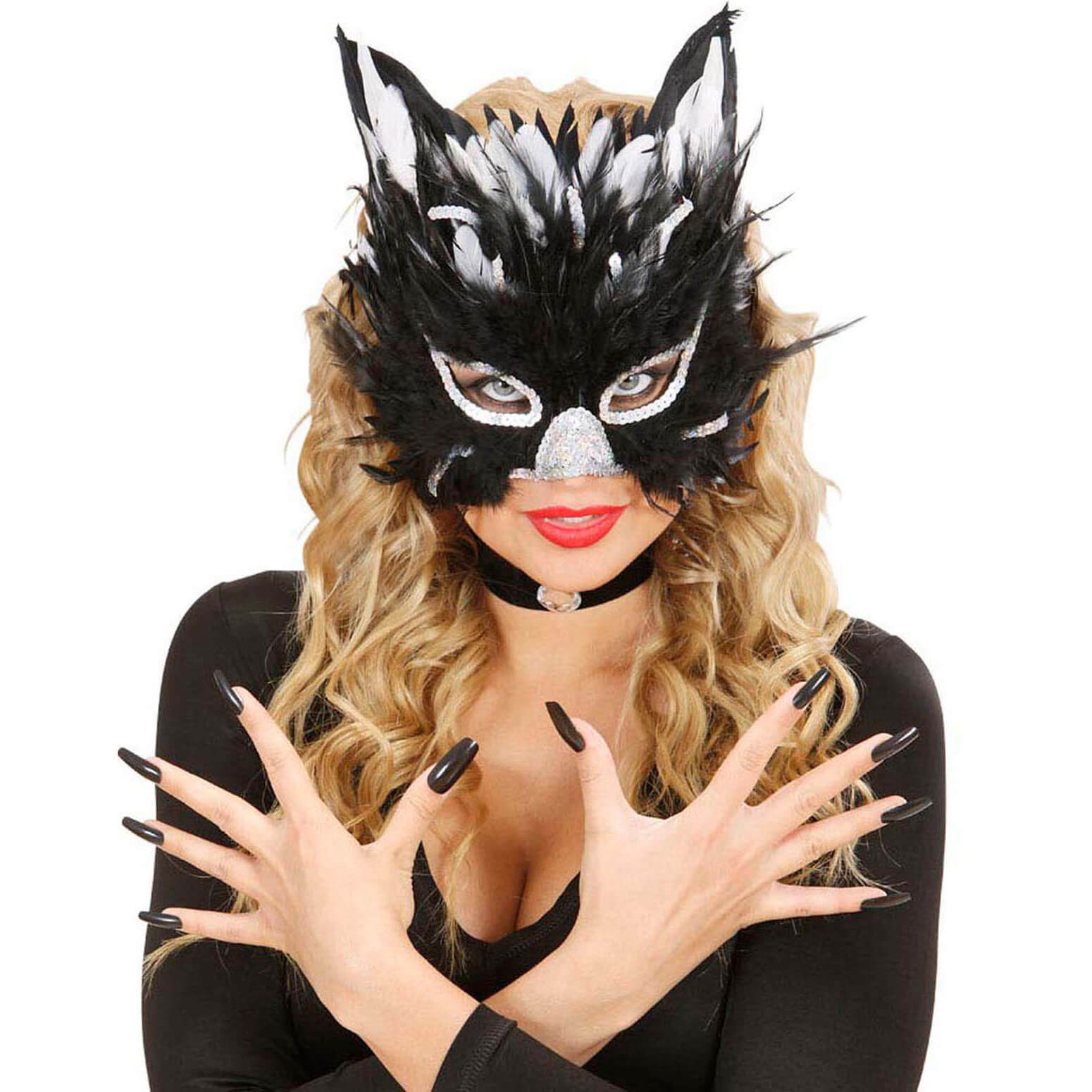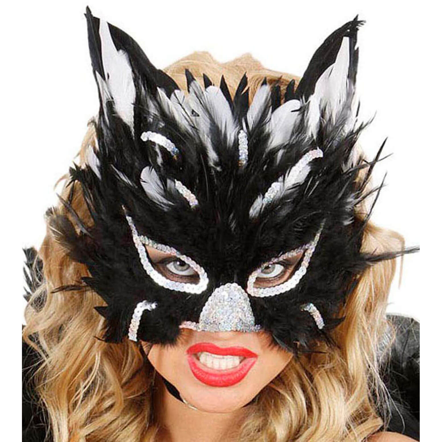 Katze Dominomaske mit Federn und Pailletten schwarz-silber – (ARTIKEL/REFERNZ: 8003558658503/WI6585C – Kategorie/Suche: – Hersteller: Widmann S.r.l.)