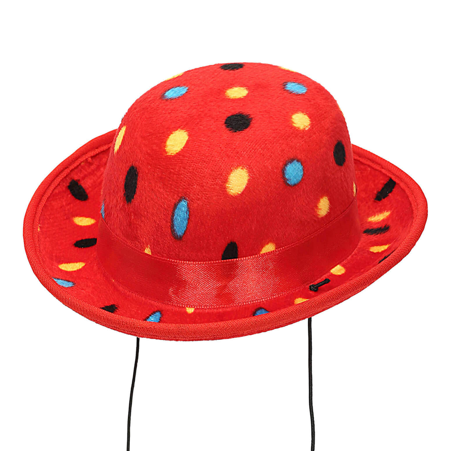 Clown Minihut Melone mit Gummiband aus Samt mit Punkten rot-bunt