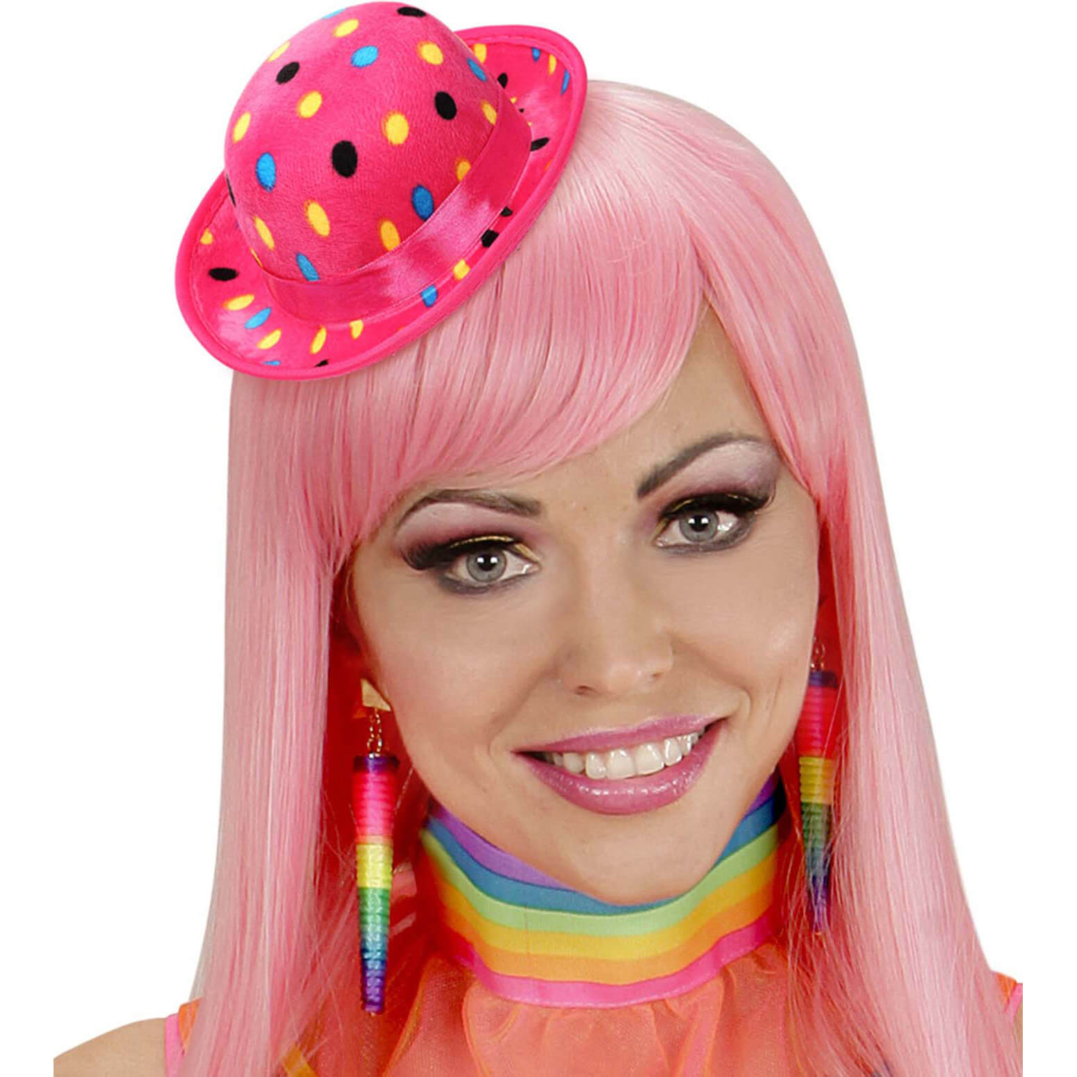 Clown Minihut Melone mit Gummiband aus Samt mit Punkten pink-bunt – (ARTIKEL/REFERNZ: 8003558685745/WI68574 – Kategorie/Suche: – Hersteller: Widmann S.r.l.)