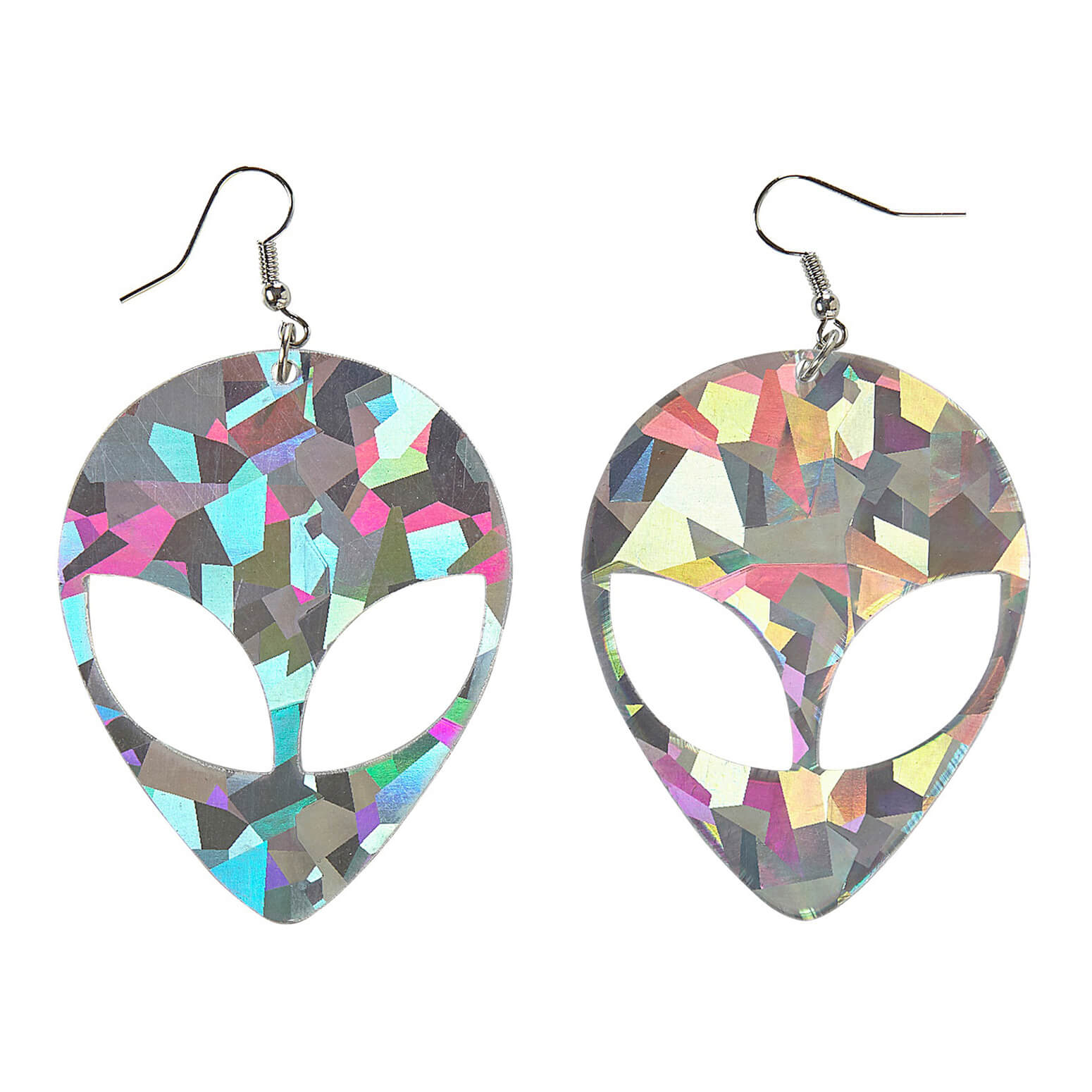 Alien Ohrringe Ohrhänger für Ohrlöcher in Holooptik silber-bunt