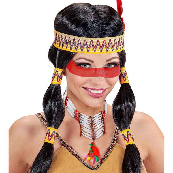 Hippie/Indianer Halsband Halskette aus Perlen Röhrenknochen und Leder Optik rot beige-braun – (ARTIKEL/REFERNZ: 8003558699506/WI6995C – Kategorie/Suche: – Hersteller: Widmann S.r.l.)