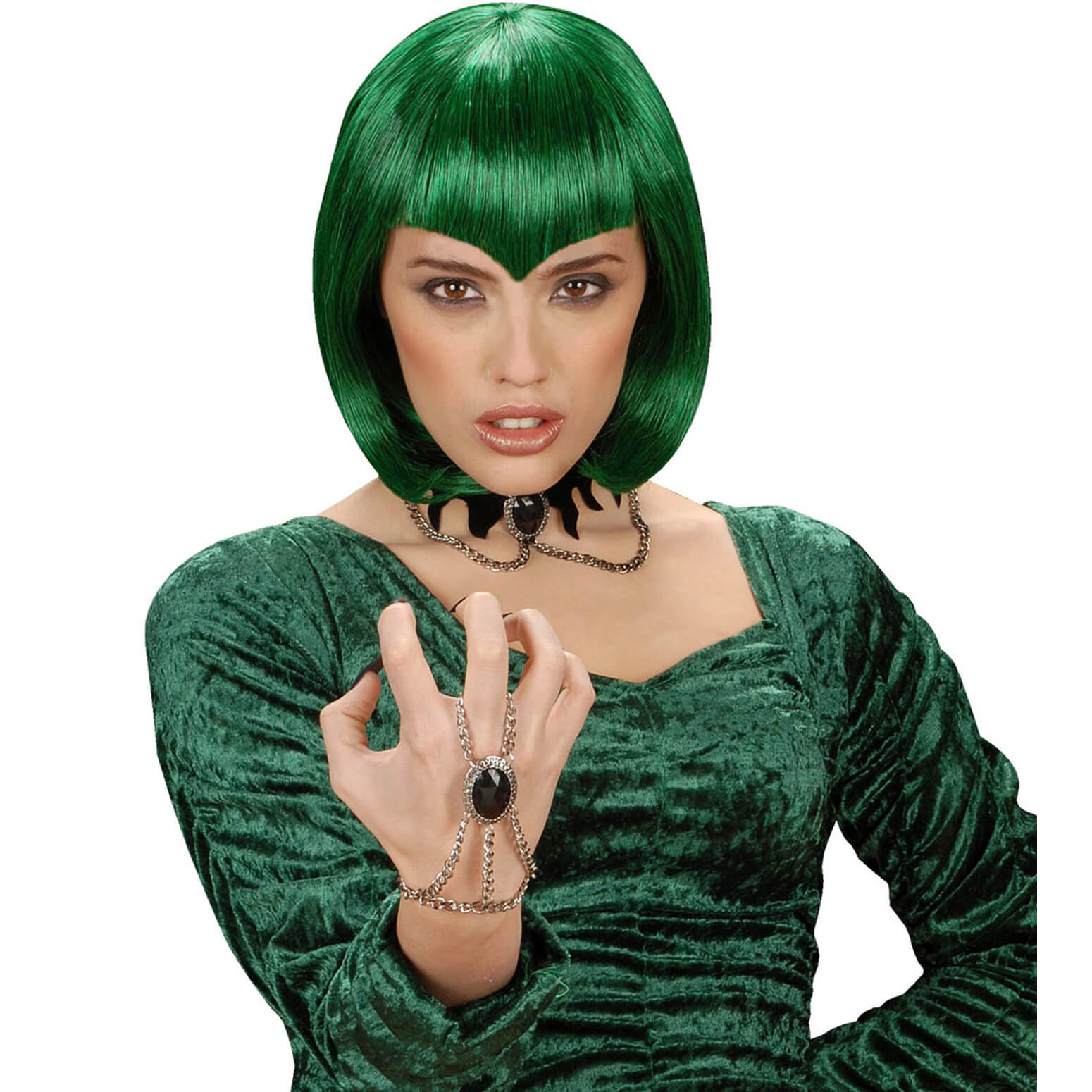 Edelleute Vintage/Gothic Armband mit Ring Manolette mit Ketten und schwarzem Stein ovale Form silber – (ARTIKEL/REFERNZ: 8003558713509/WI7135H – Kategorie/Suche: – Hersteller: Widmann S.r.l.)
