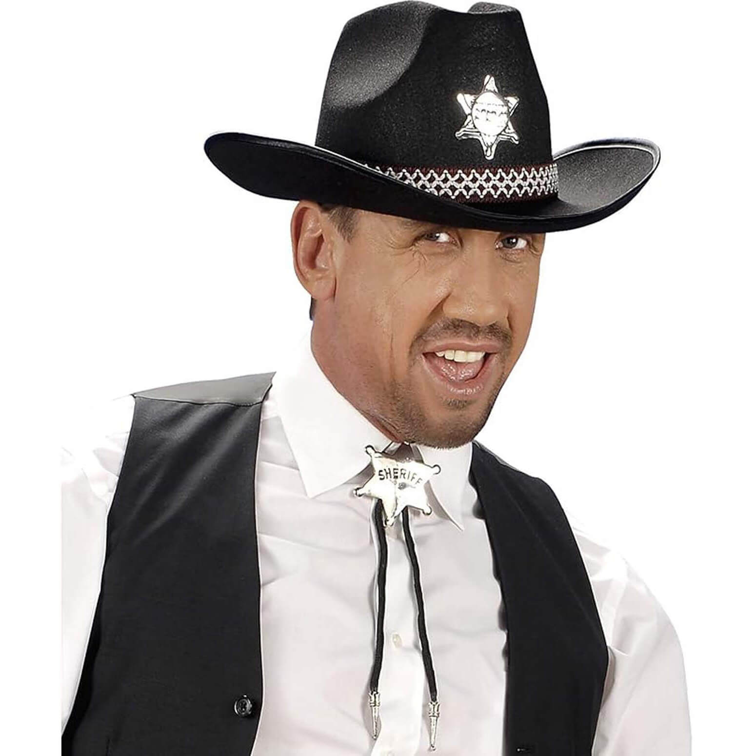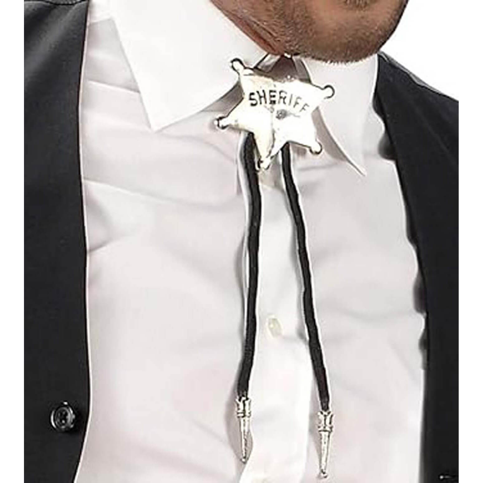 Cowboy Western Sheriff Schmuckkrawatte Halsband in schwarz Lederoptik mit Sheriffstern Classic silber – (ARTIKEL/REFERNZ: 8003558713905/WI7139C – Kategorie/Suche: – Hersteller: Widmann S.r.l.)