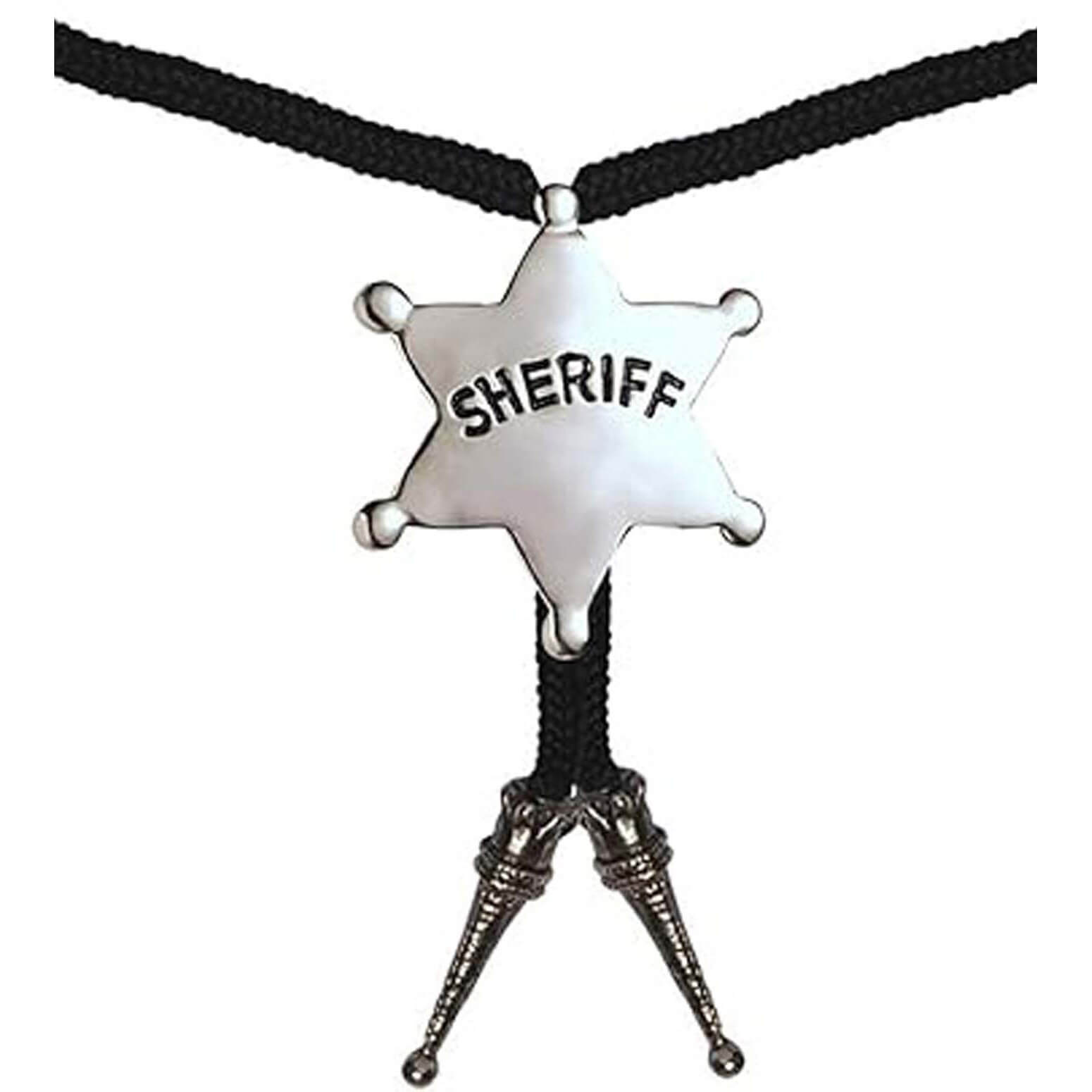 Cowboy Western Sheriff Schmuckkrawatte Halsband in schwarz Lederoptik mit Sheriffstern Classic silber