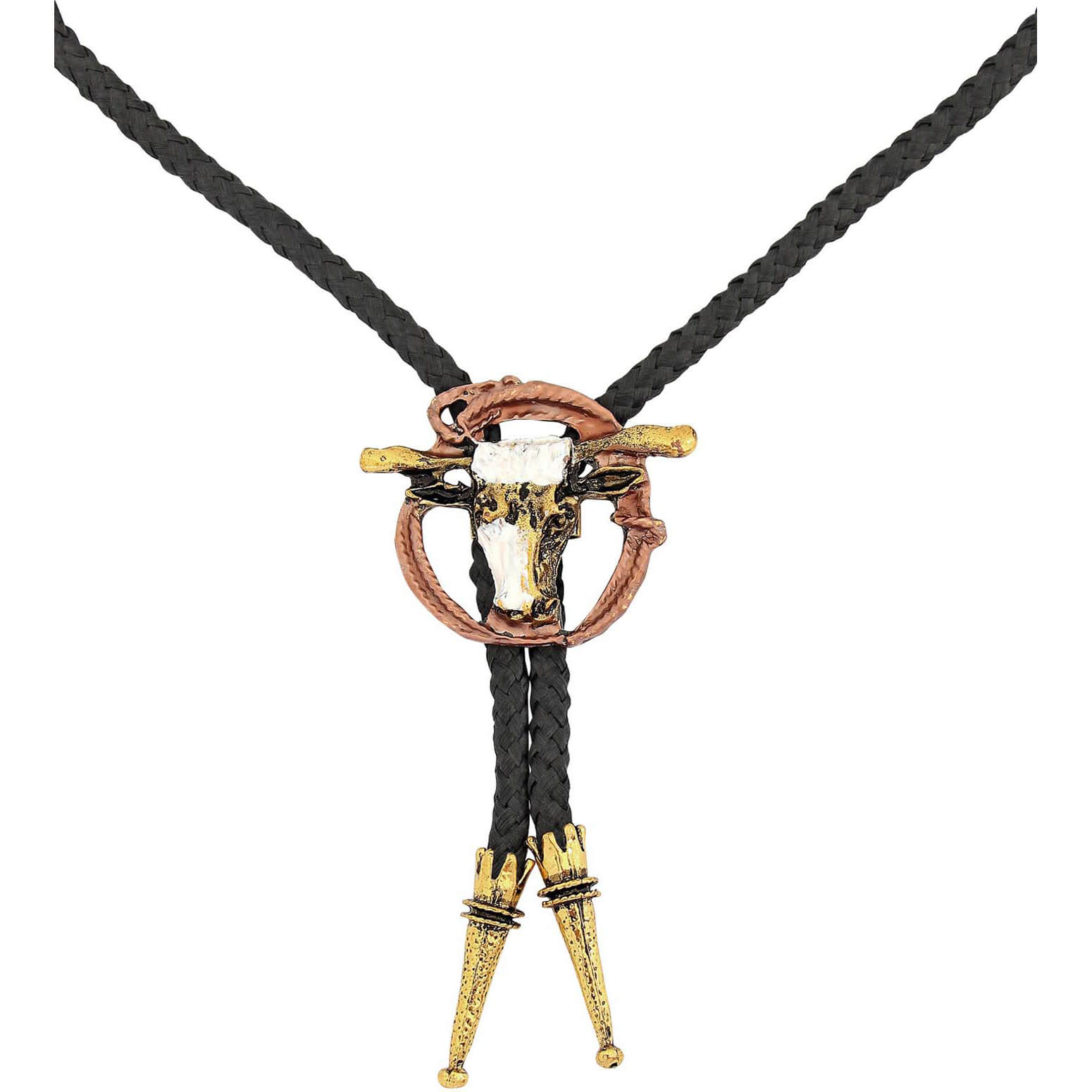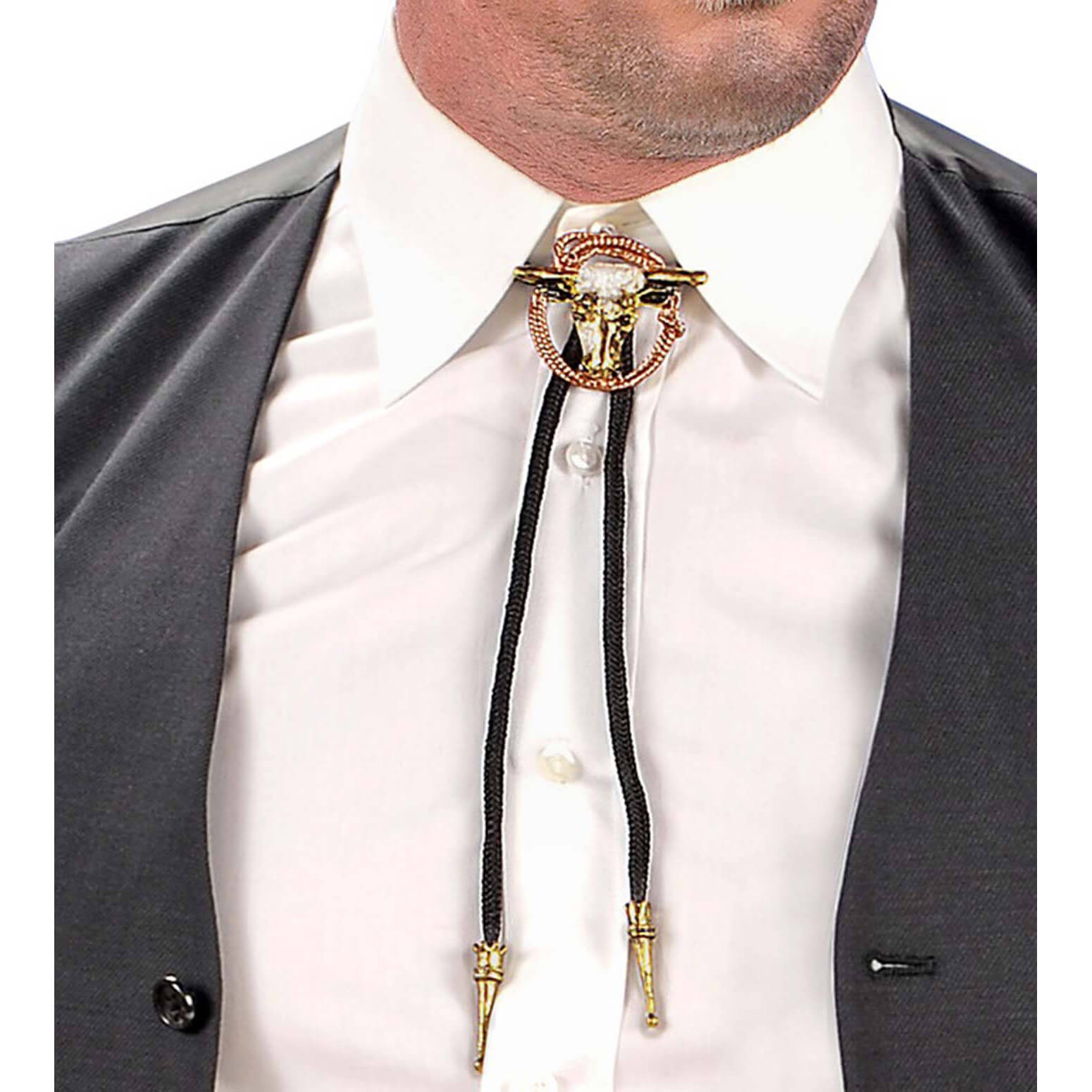 Cowgirl Cowboy Büffel Schmuckkrawatte Halsband in Messing und Lederoptik schwarz-gold