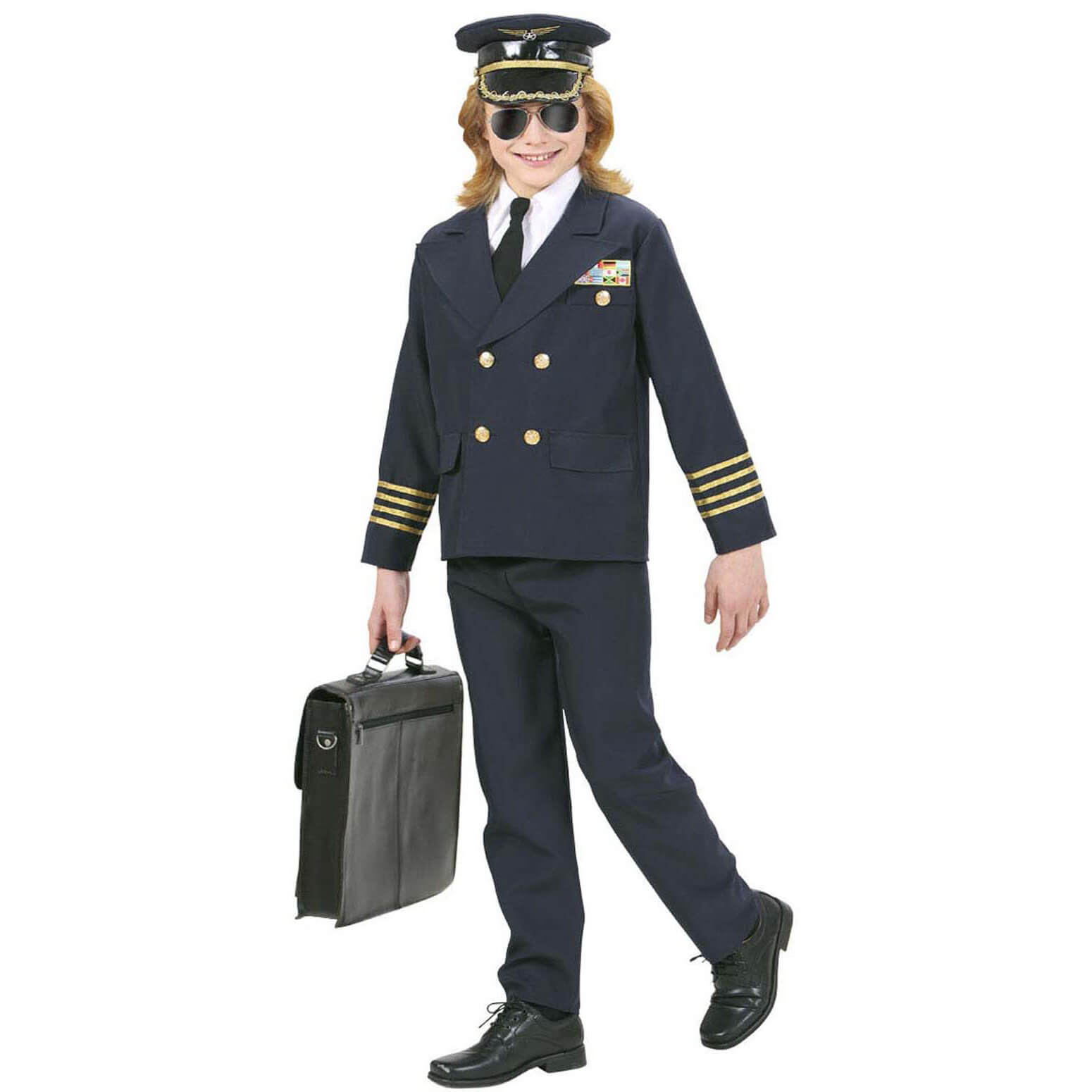 Flugkapitän Pilot Uniform Kinderkostüm Anzug mit Hose und Mütze dunkelblau – (ARTIKEL/REFERNZ: 8003558731466/WI73146-8003558731473/WI73147-8003558731480/WI73148-8003558731497/WI73149 – Kategorie/Suche: – Hersteller: Widmann S.r.l.)