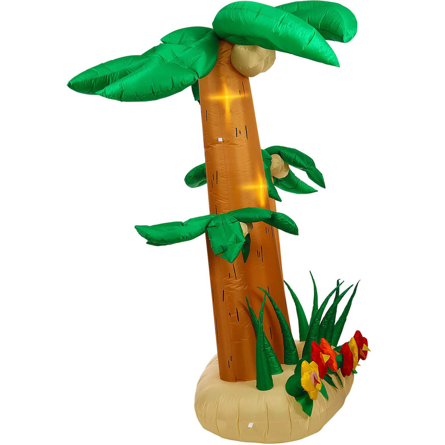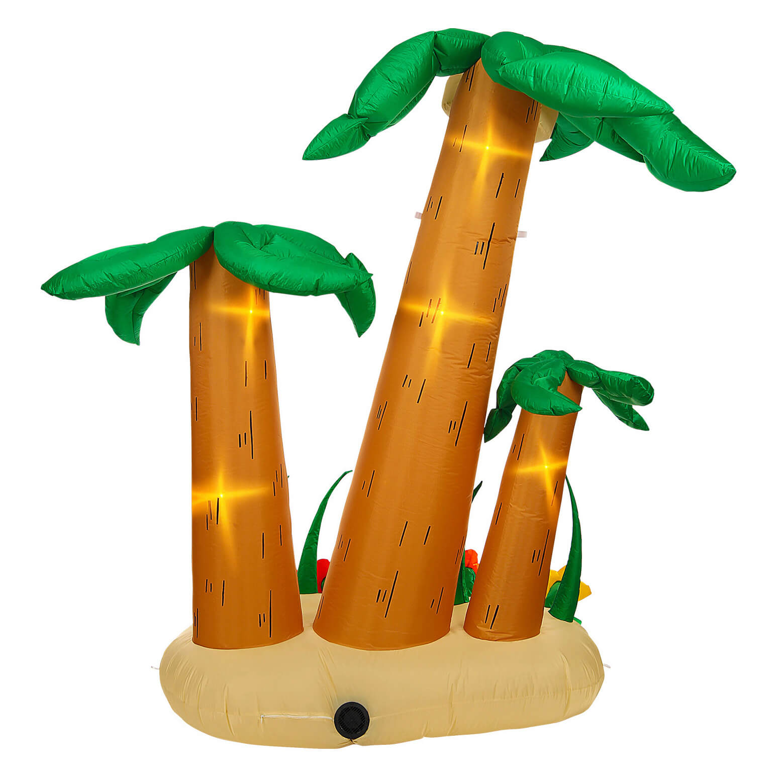Palmen Deko Standfigur selbstaufblasend LED Palmen Set 240cm von innen beleuchtet mit Ventilator braun-grün