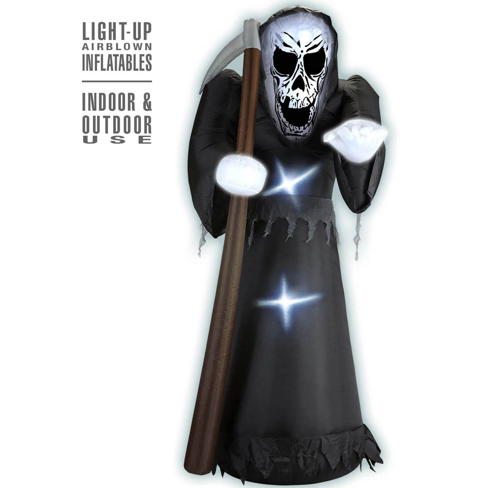 Skelett Tod Deko Standfigur selbstaufblasend LED 122cm von innen beleuchtet mit Ventilator schwarz