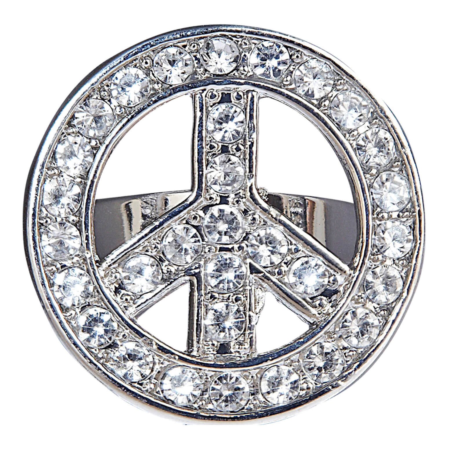 70er Jahre Hippie Peacezeichen Ring Strassoptik silber – (ARTIKEL/REFERNZ: 8003558753802/WI7538H – Kategorie/Suche: – Hersteller: Widmann S.r.l.)