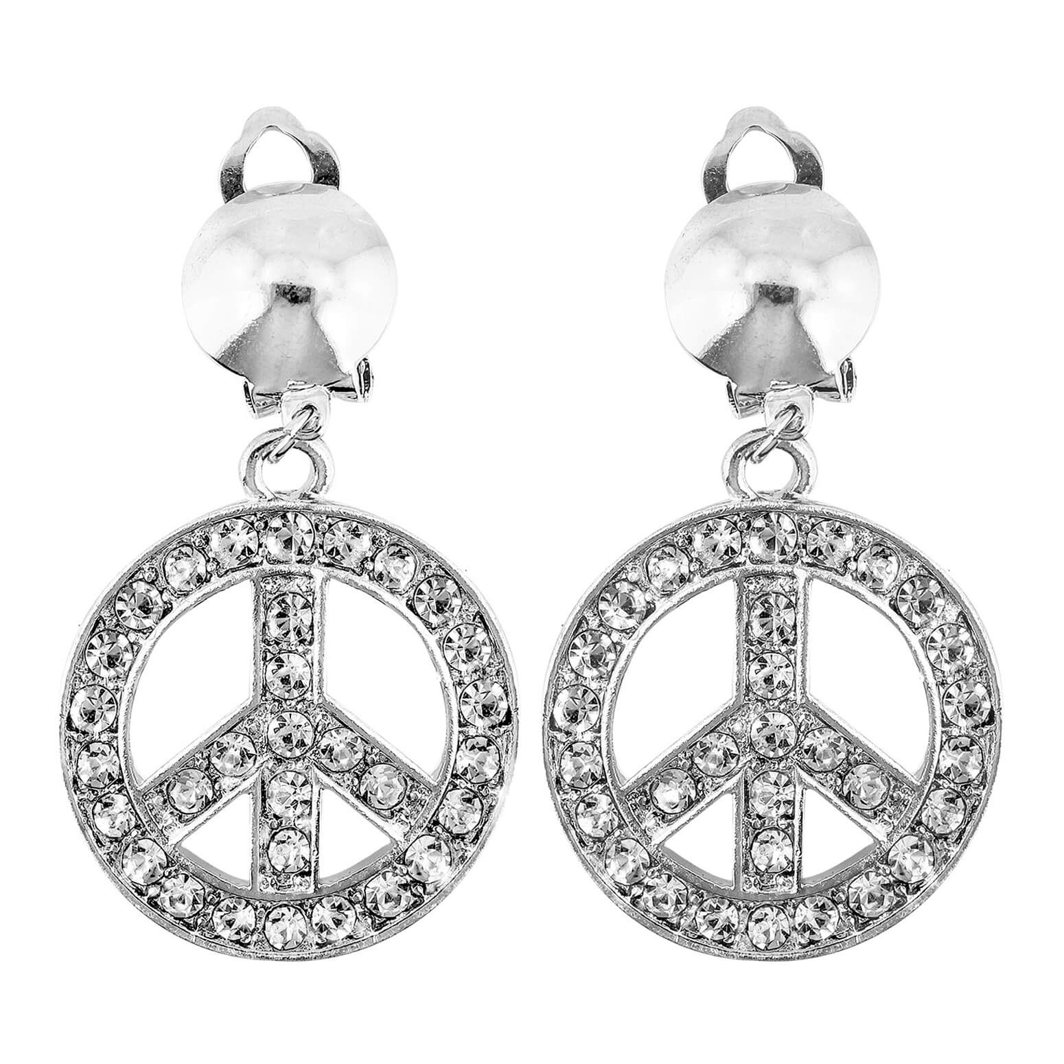 70er Jahre Hippie Peacezeichen Ohrringe Strassoptik an Clipsverschluss silber – (ARTIKEL/REFERNZ: 8003558753901/WI7539E – Kategorie/Suche: – Hersteller: Widmann S.r.l.)
