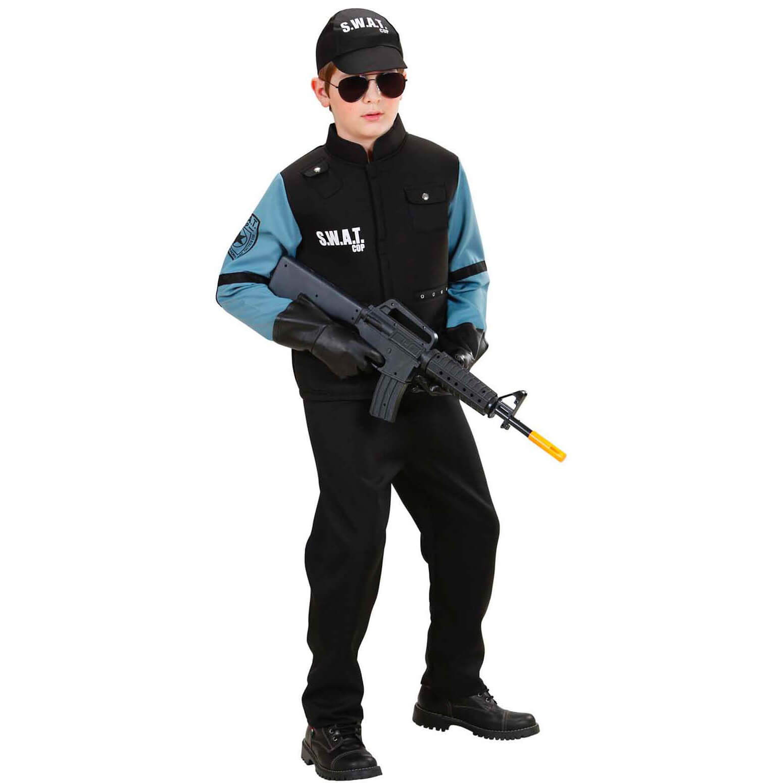 SWAT Kinderkostüm Overall S.W.A.T. mit schusssicherer Weste und Mütze schwarz-hellblau – (ARTIKEL/REFERNZ: 8003558765461/WI76546-8003558765478/WI76547-8003558765485/WI76548 – Kategorie/Suche: – Hersteller: Widmann S.r.l.)