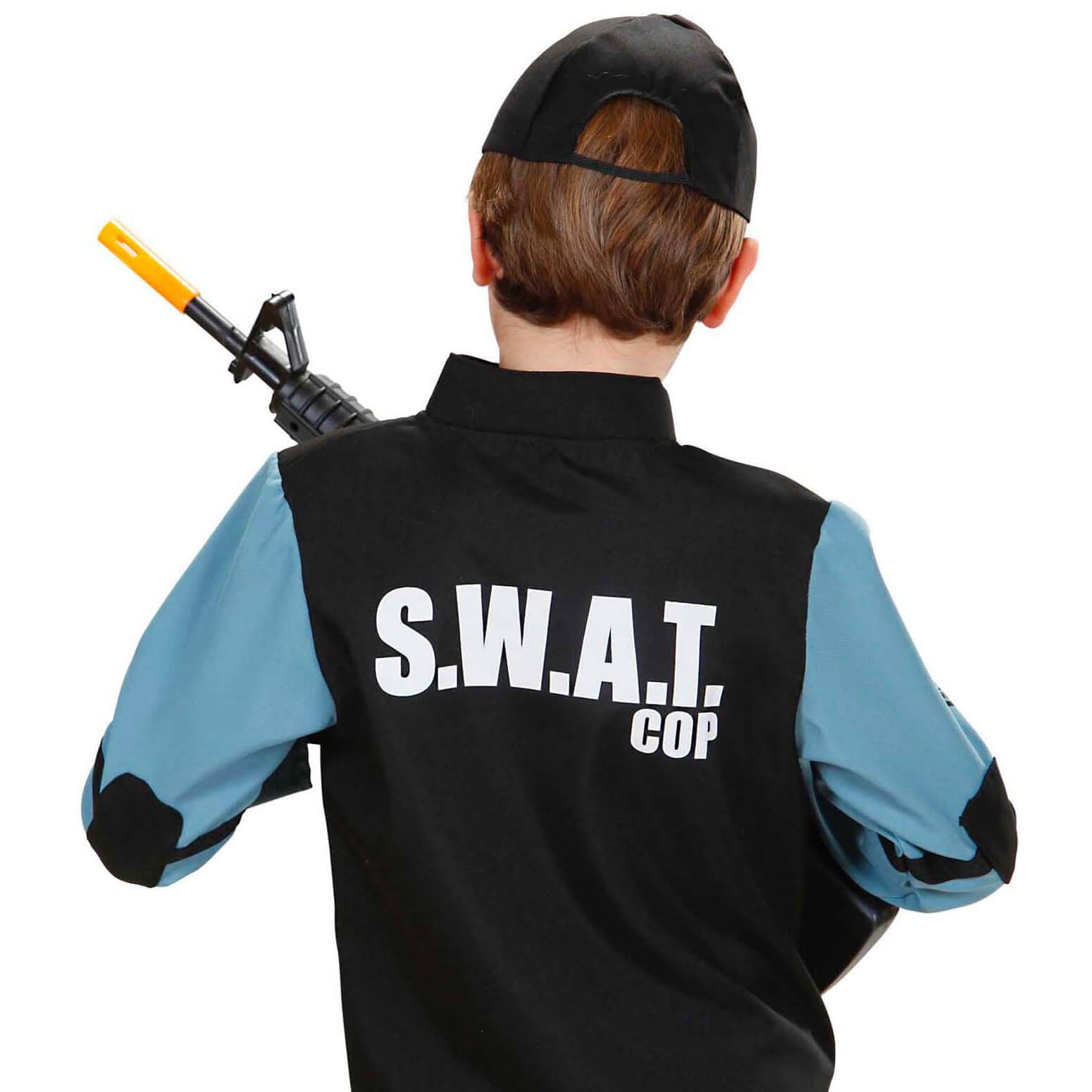 SWAT Kinderkostüm Overall S.W.A.T. mit schusssicherer Weste und Mütze schwarz-hellblau