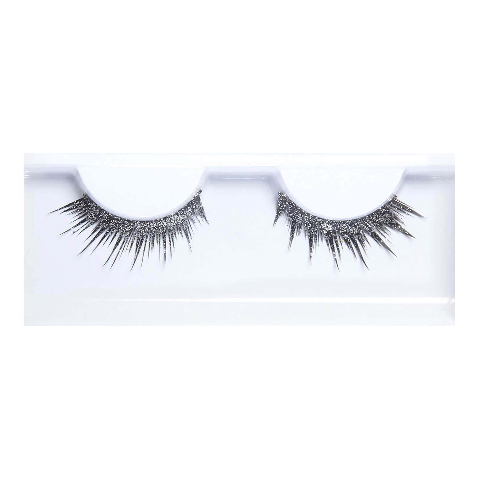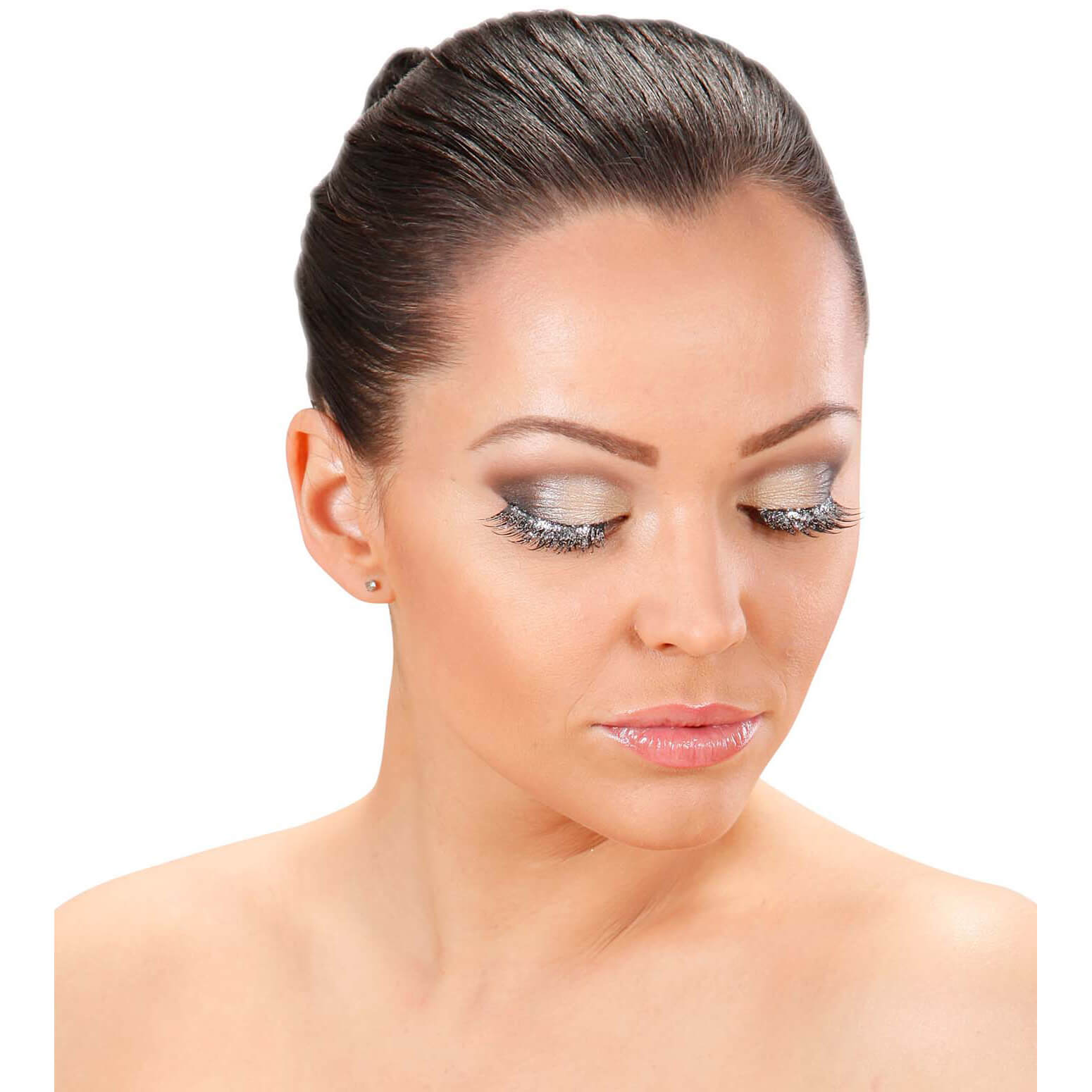 Künstliche Wimpern mit Kleber mit Glitzer und Spitzen metallic silber