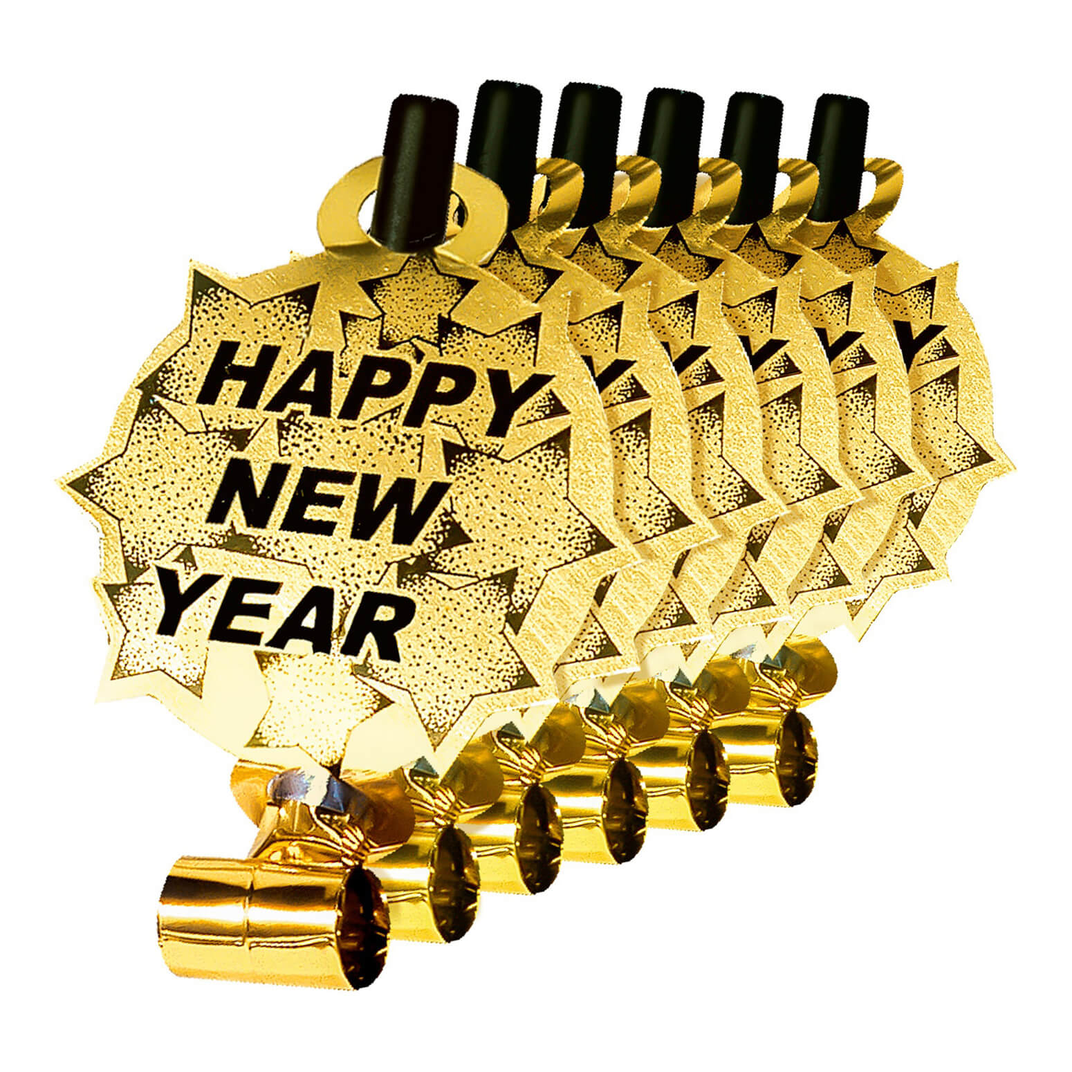 Silvester Deko Luftrüssel Tröte mit Sternen Happy New Year aus Kunststoff Tischdeko metallic schwarz-gold