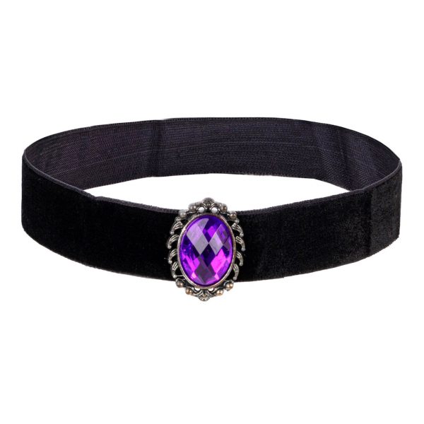 Edelleute Vintage/Gothic Halsband mit Stein Samtband mit gefasstem Stein schwarz-lila – (ARTIKEL/REFERNZ: 8003558796502/WI7965V – Kategorie/Suche: – Hersteller: Widmann S.r.l.)