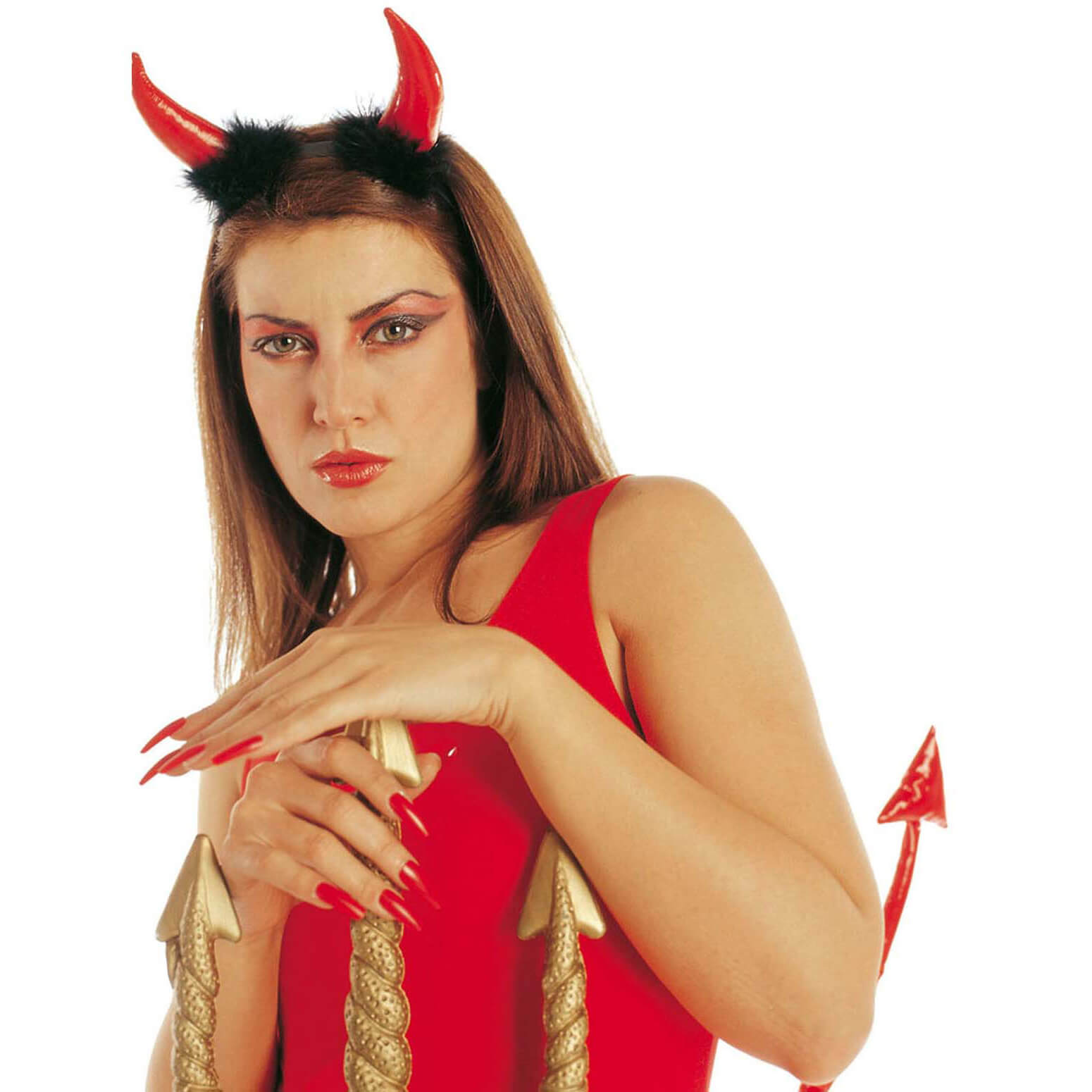 Teufel/Dämon Haarreif mit Hörnern Lack mit Marabu rot-schwarz – (ARTIKEL/REFERNZ: 8003558811809/WI8118V – Kategorie/Suche: – Hersteller: Widmann S.r.l.)
