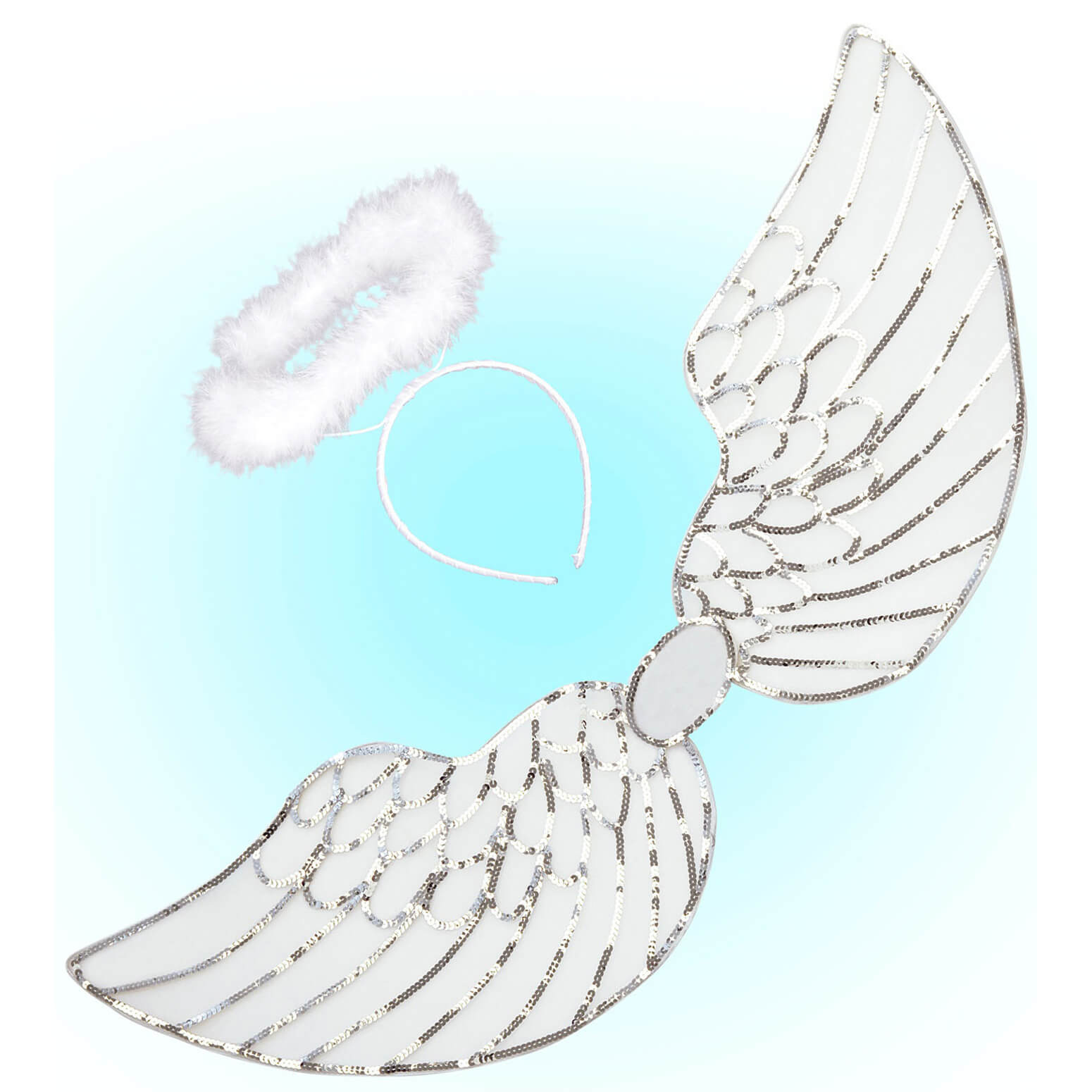Engel Textilflügel+Heiligenschein Set mit Pailletten und Marabu weiß-silber – (ARTIKEL/REFERNZ: 8003558823000/WI8230A – Kategorie/Suche: – Hersteller: Widmann S.r.l.)