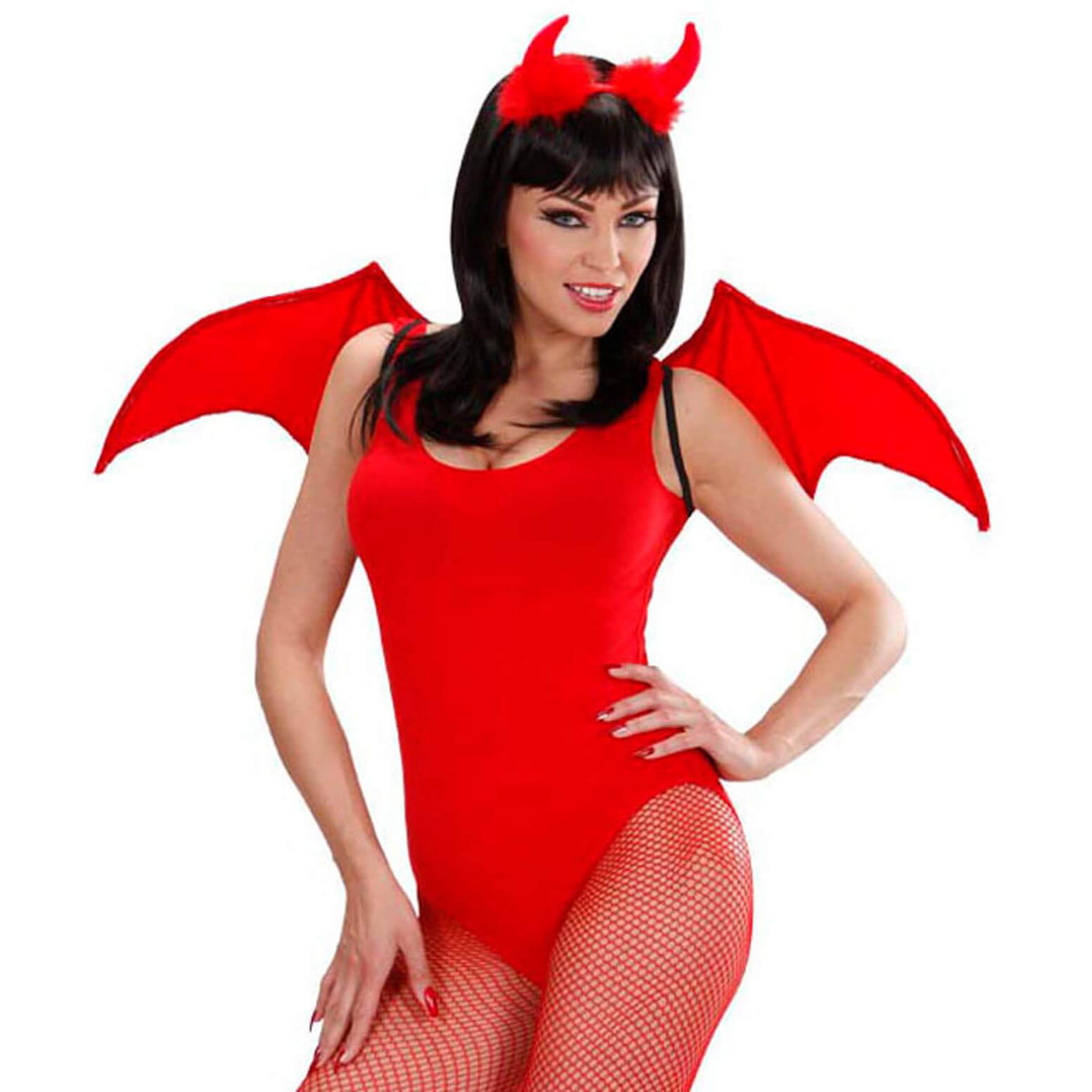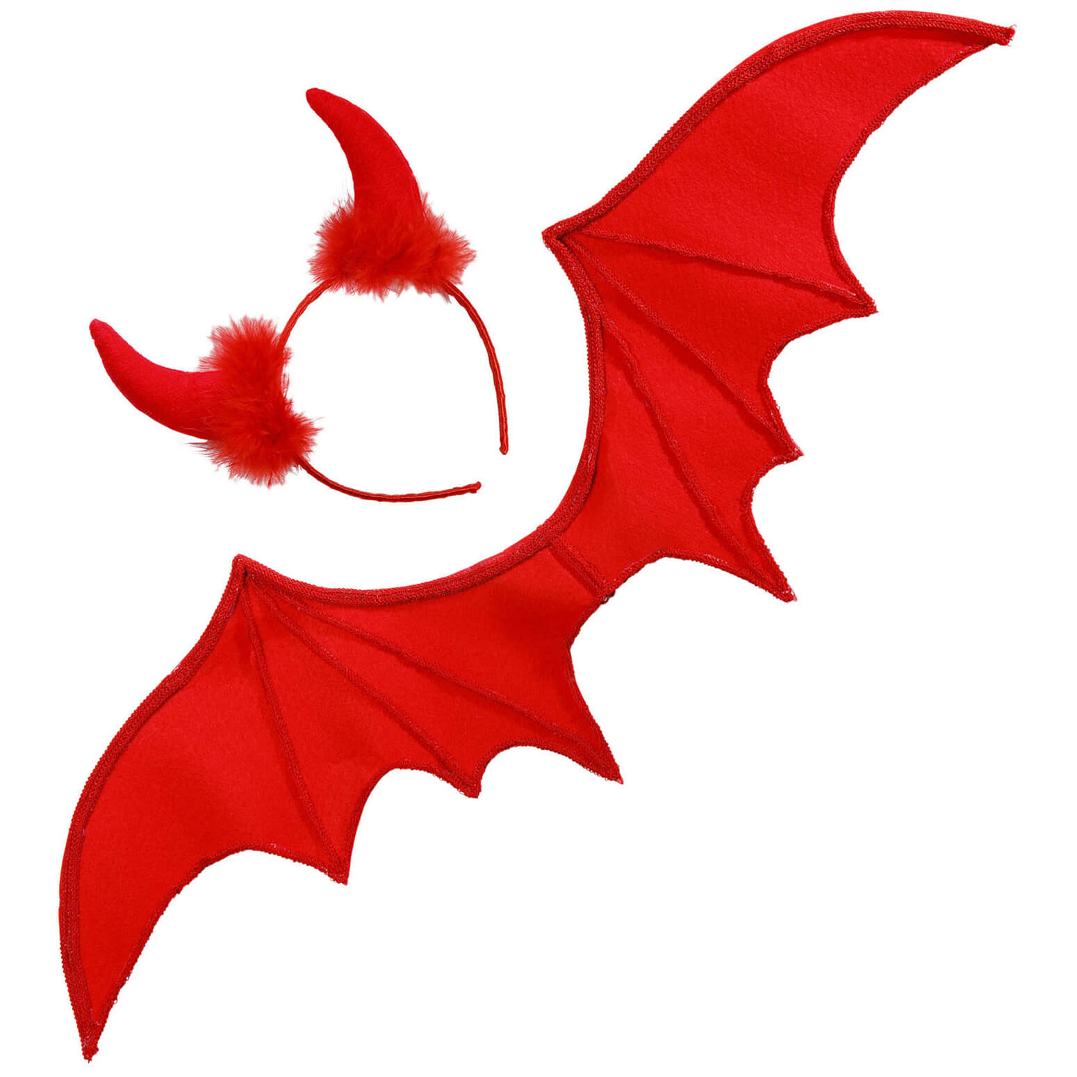 Teufel / Dämon Textilflügel+Hörner Set rot