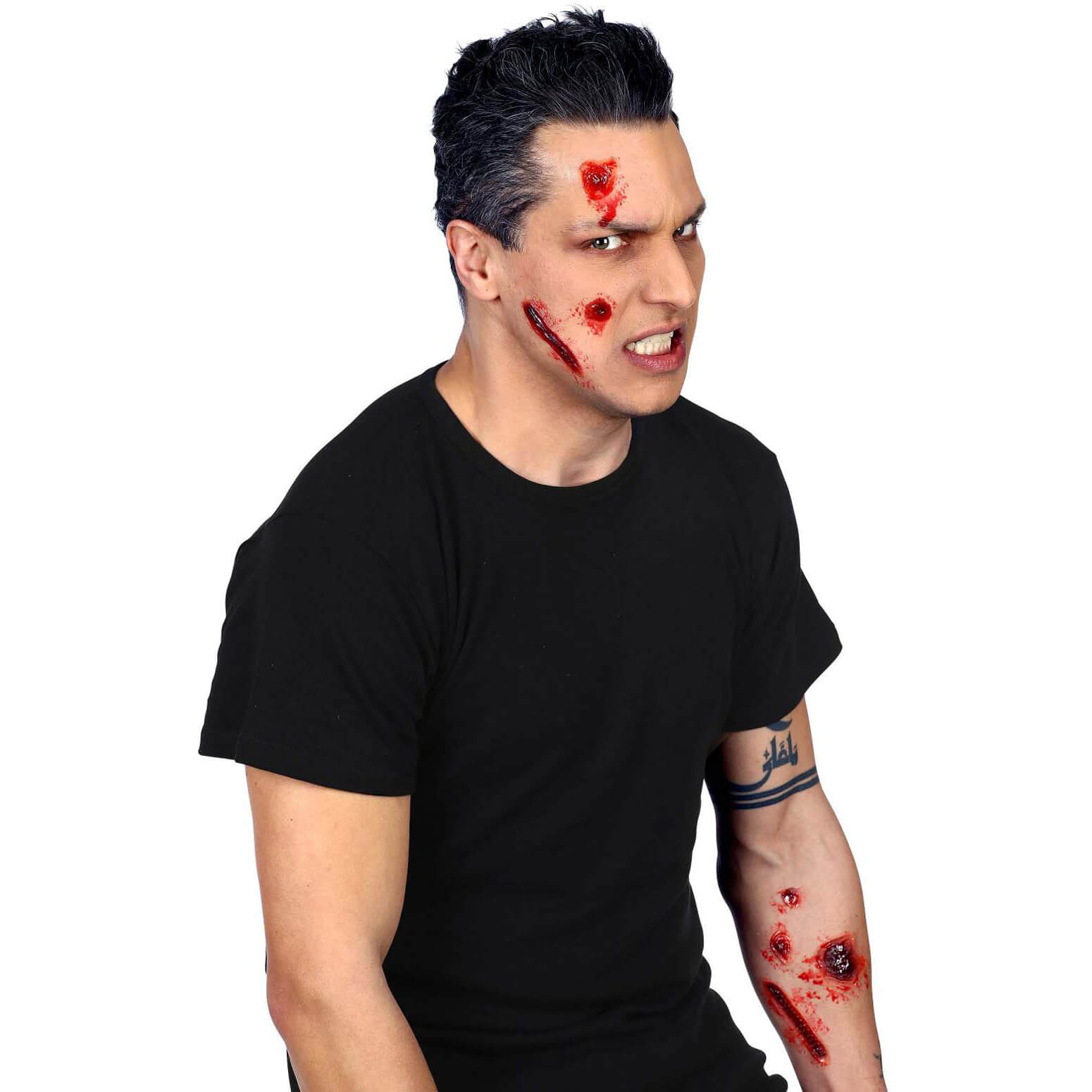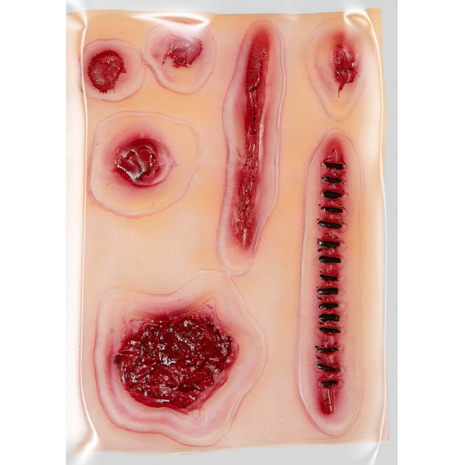 Zombie Wunden Set Latex selbstklebend zum individuell Zuschneiden haut-rot