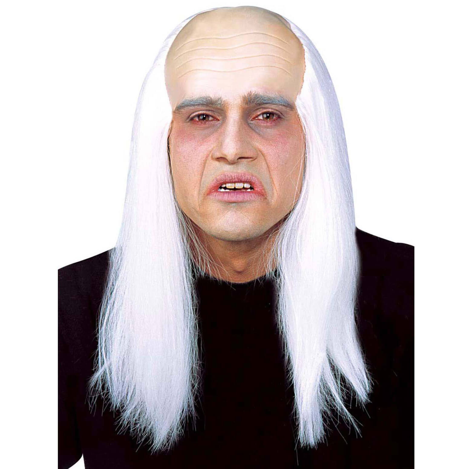 Zombie Riff Raff Teilglatze Haarkranz lang glatt Zombie Halbglatzenkappe zum Aufsetzen mit hautfarbenem Latexteil weiß