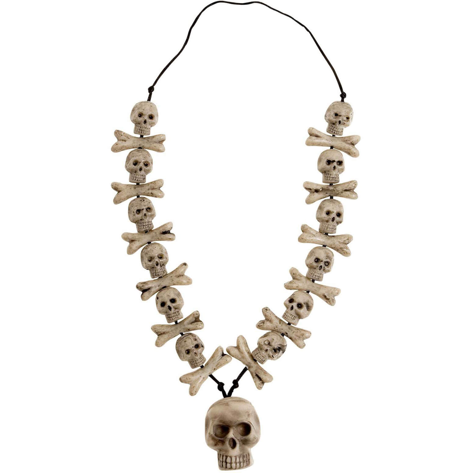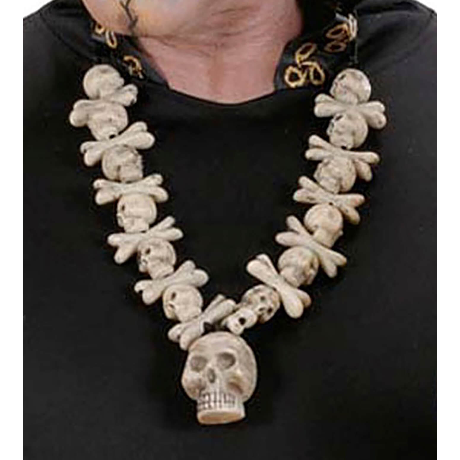 Schädel bleich Halskette Collier Schädel und Knochen aufgereiht aus Kunststoff beige-schwarz
