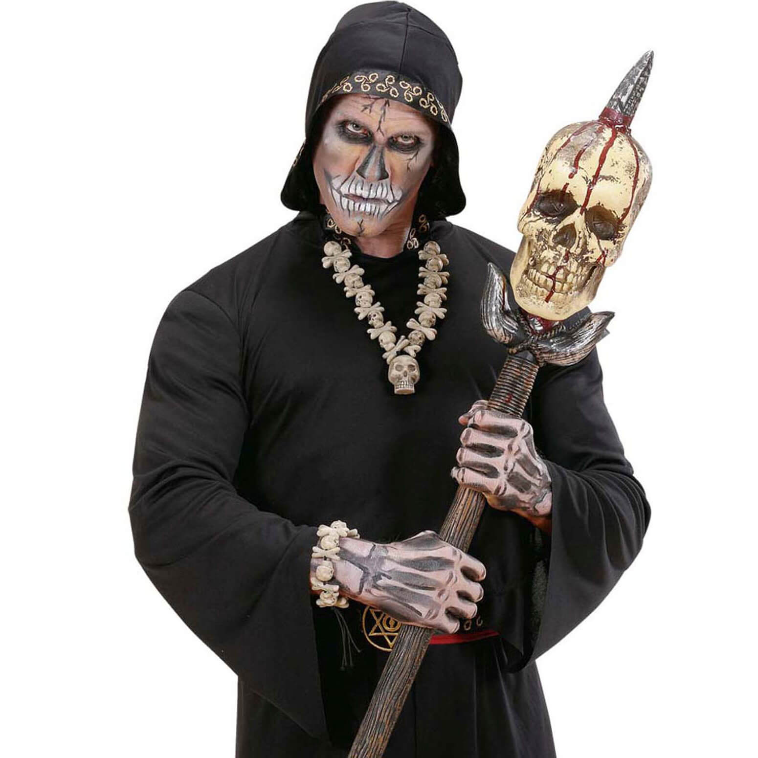 Schädel bleich Halskette Collier Schädel und Knochen aufgereiht aus Kunststoff beige-schwarz – (ARTIKEL/REFERNZ: 8003558859702/WI8597N – Kategorie/Suche: Dia de los Muertos Catrina Tag der Toten – Hersteller: Widmann S.r.l.)