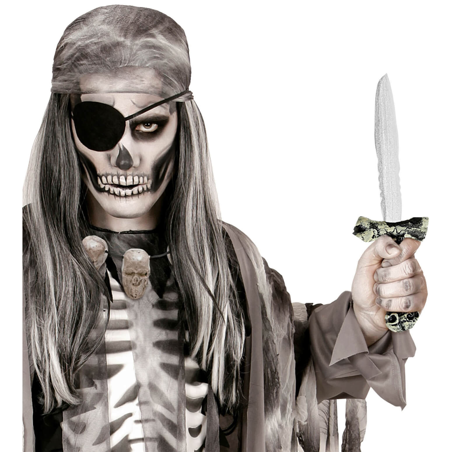 Voodoo Dolch Schädelmesser Opferdolch auch für Piraten 31cm beige-silber