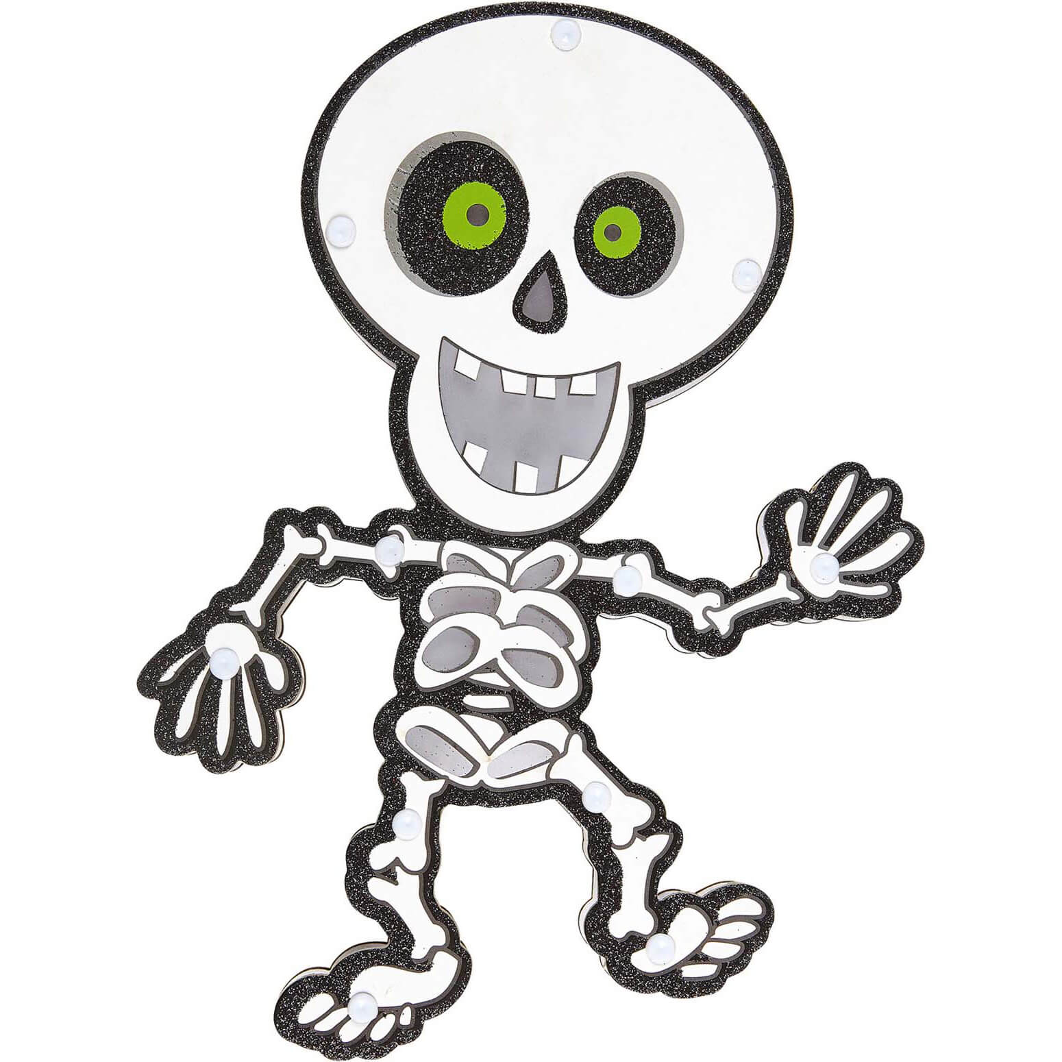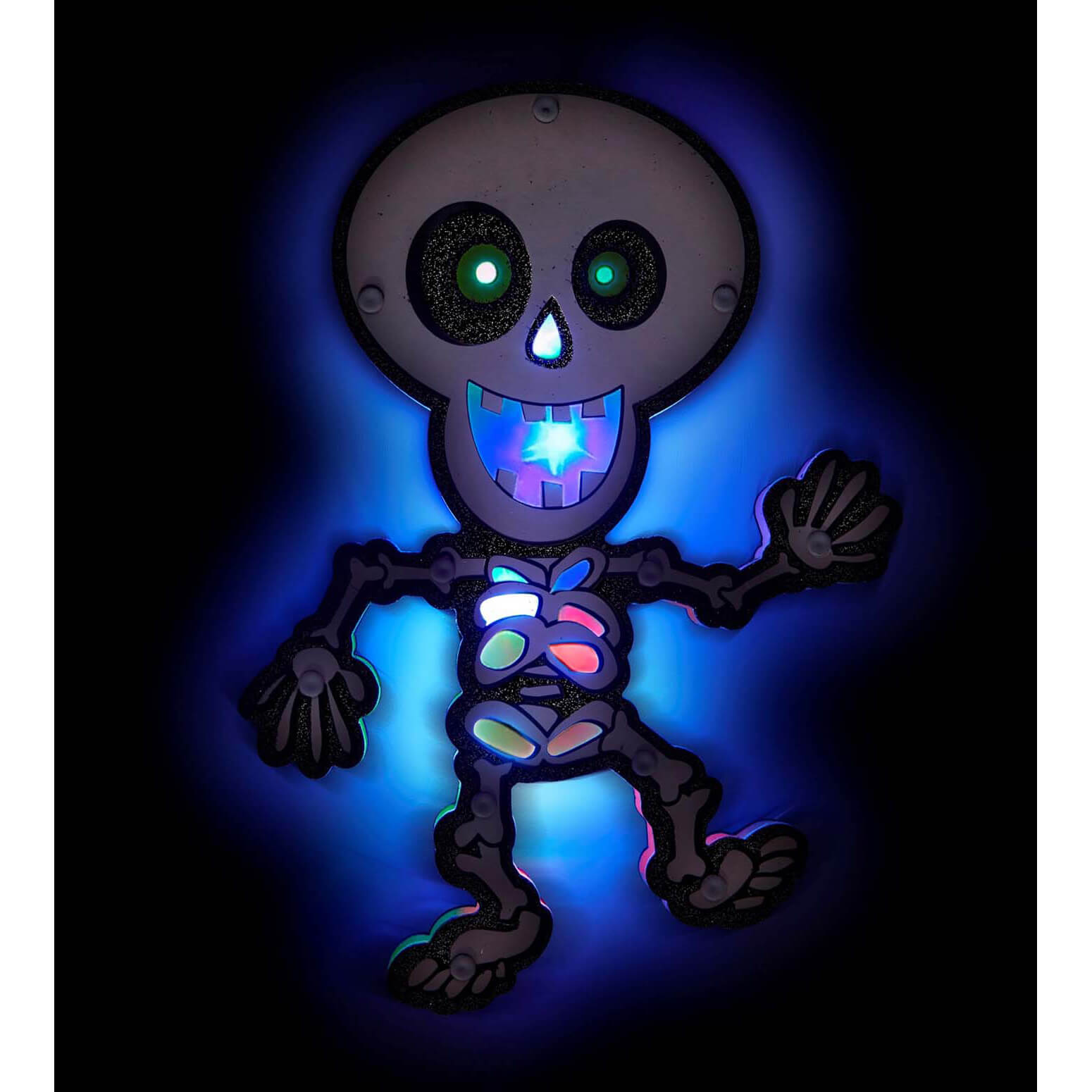 Skelett bleich Deko Wandbild mit LED mit Glitzer und bunten Lichtern 29x21cm bunt